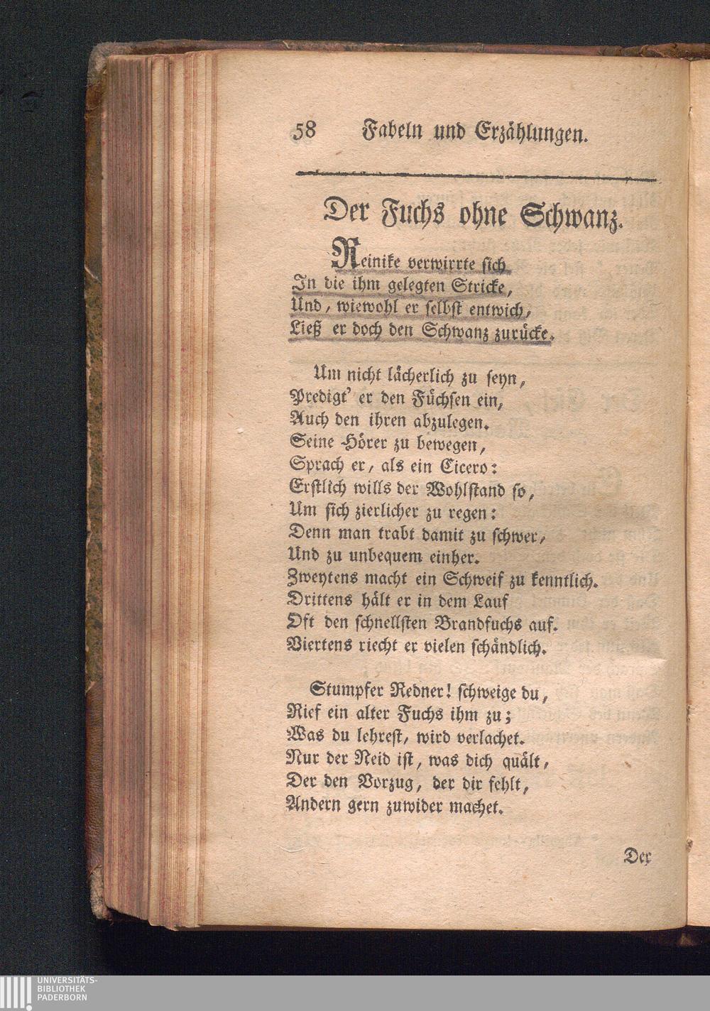 Der Fuchs ohne Schwanz. S. Aesopi Fab. n. 7. Burcard Waldis, Bl. 168 B. 3. F. 41.[...]