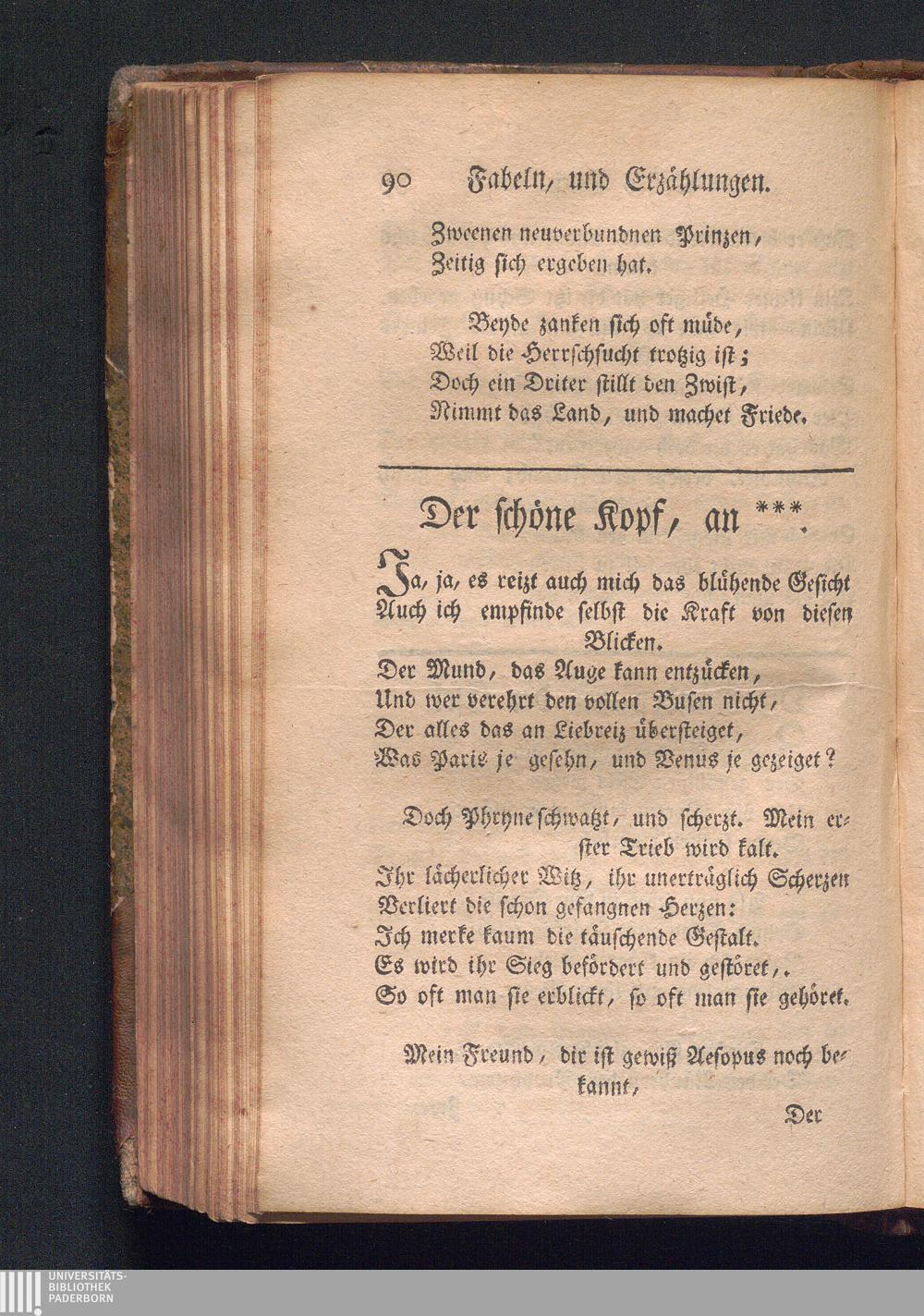 Der schöne Kopf. S. den Phaedrus, L. I. F. 7. Anonymi Fab. Aesop. n. 24. und La Fontaine,[...]