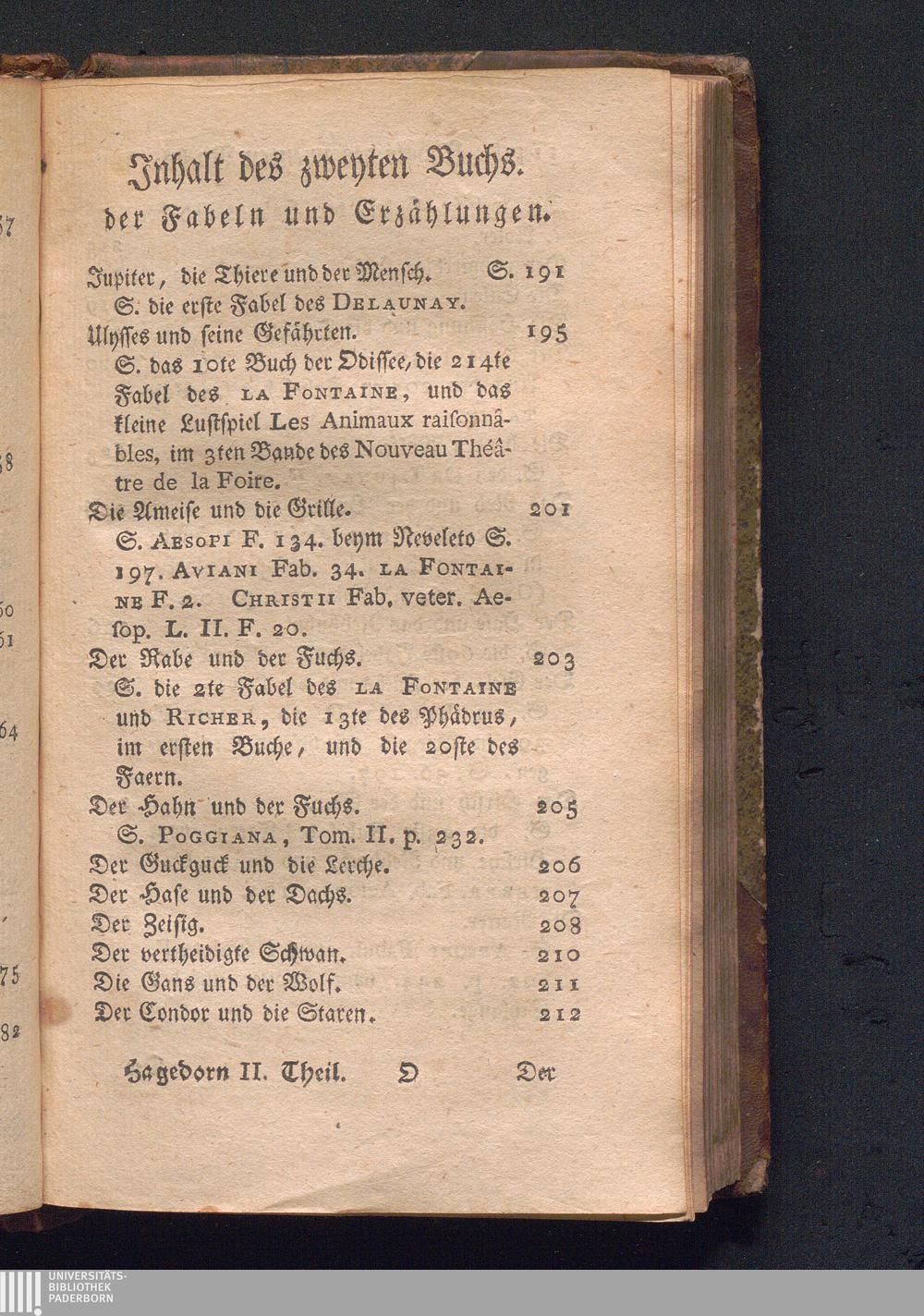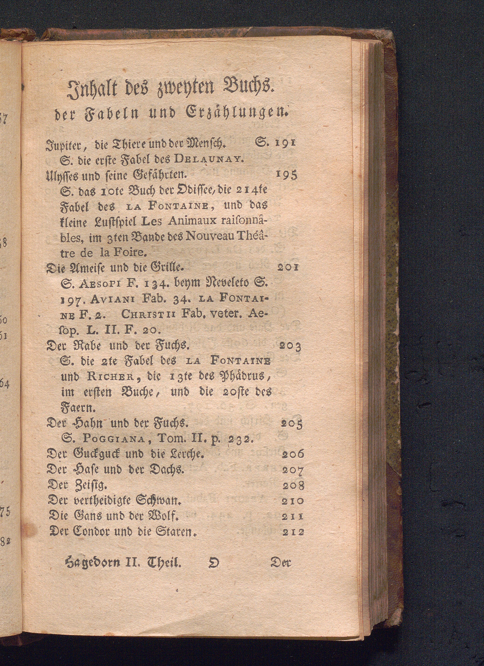 Inhalt des zweyten Buchs. der Fabeln und Erzählungen.