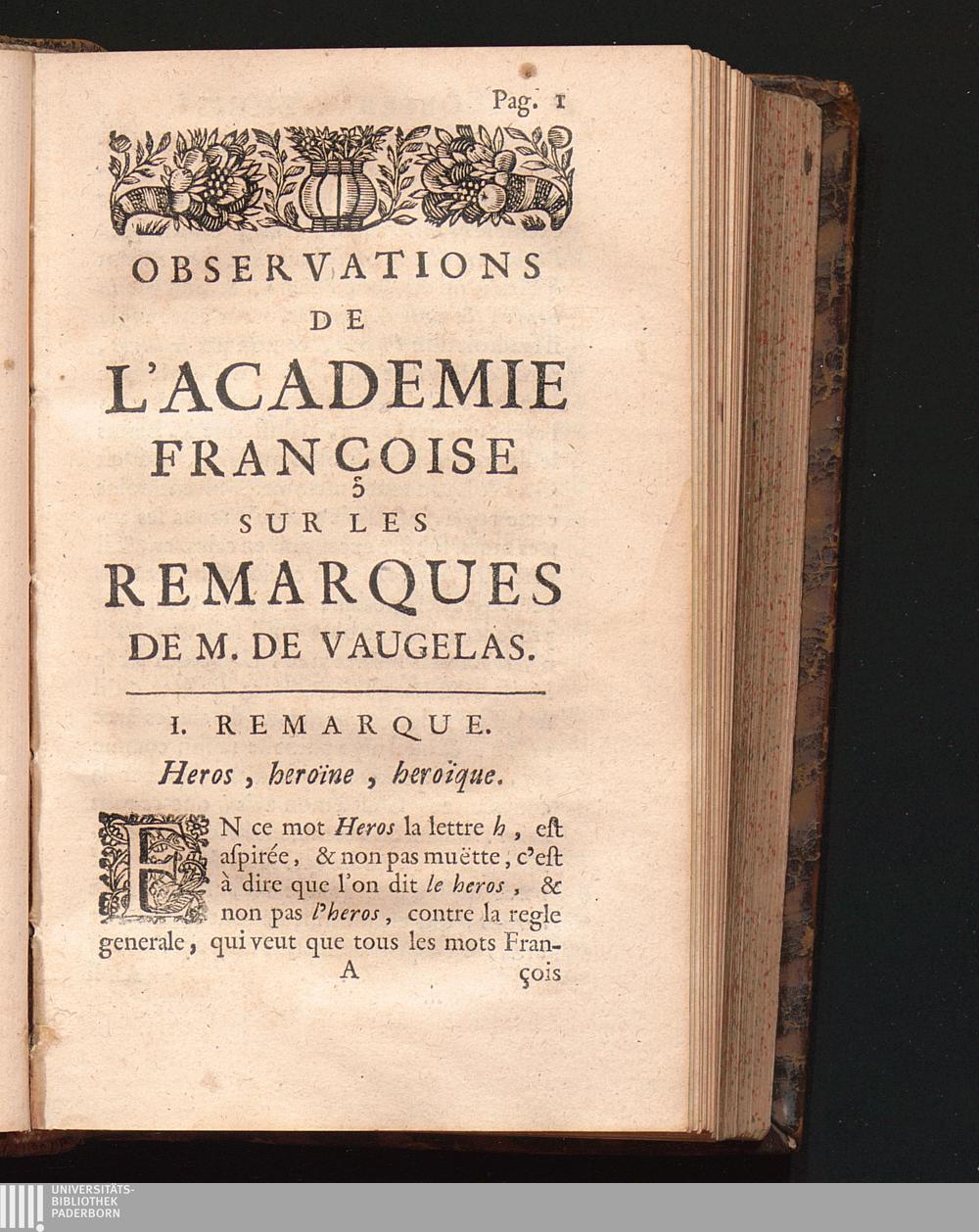 Observations De L'Academie Françoise Sur Les Remarques De M. De Vaugelas