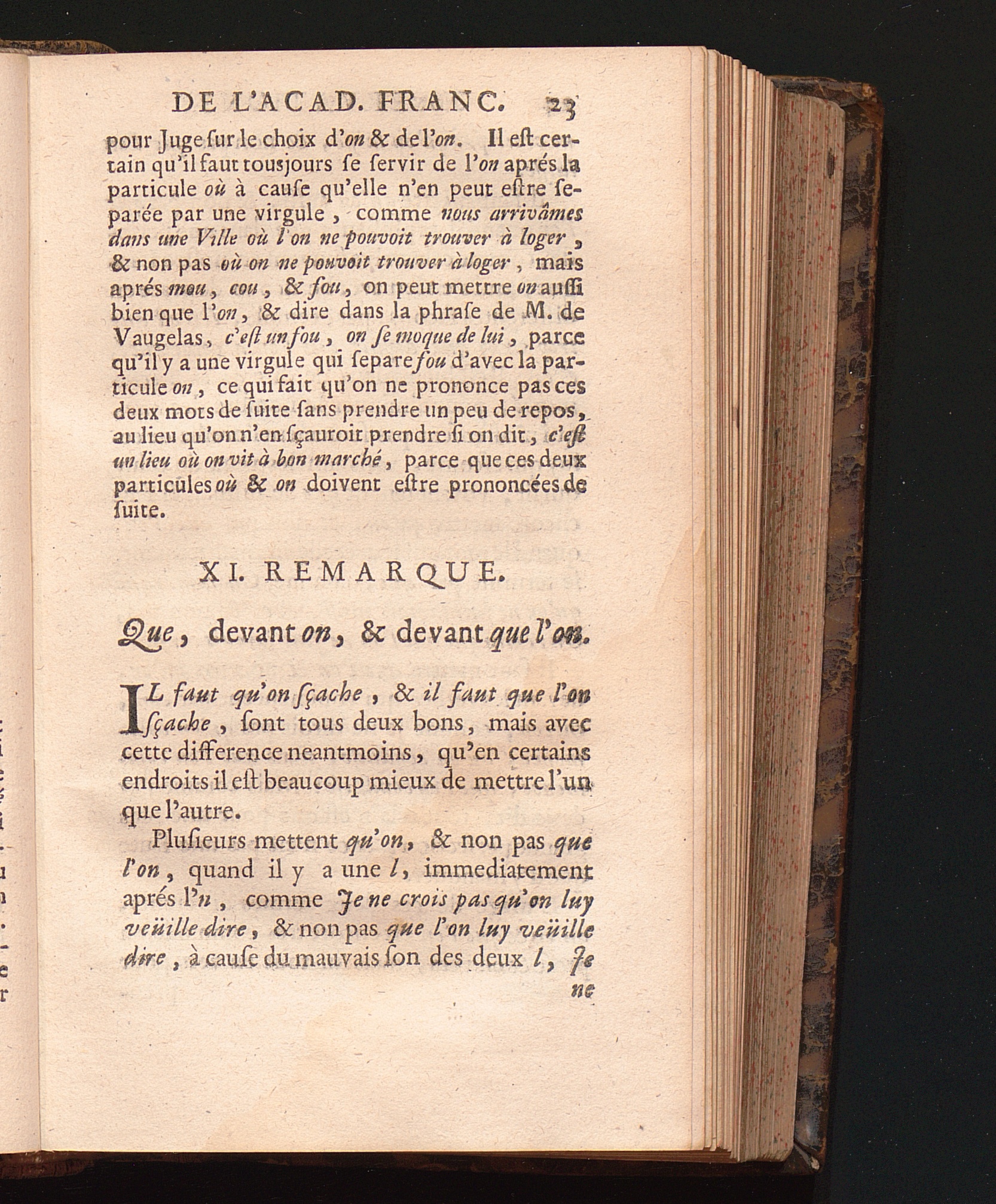 11 Rem. Que, devant on, & devant l'on.