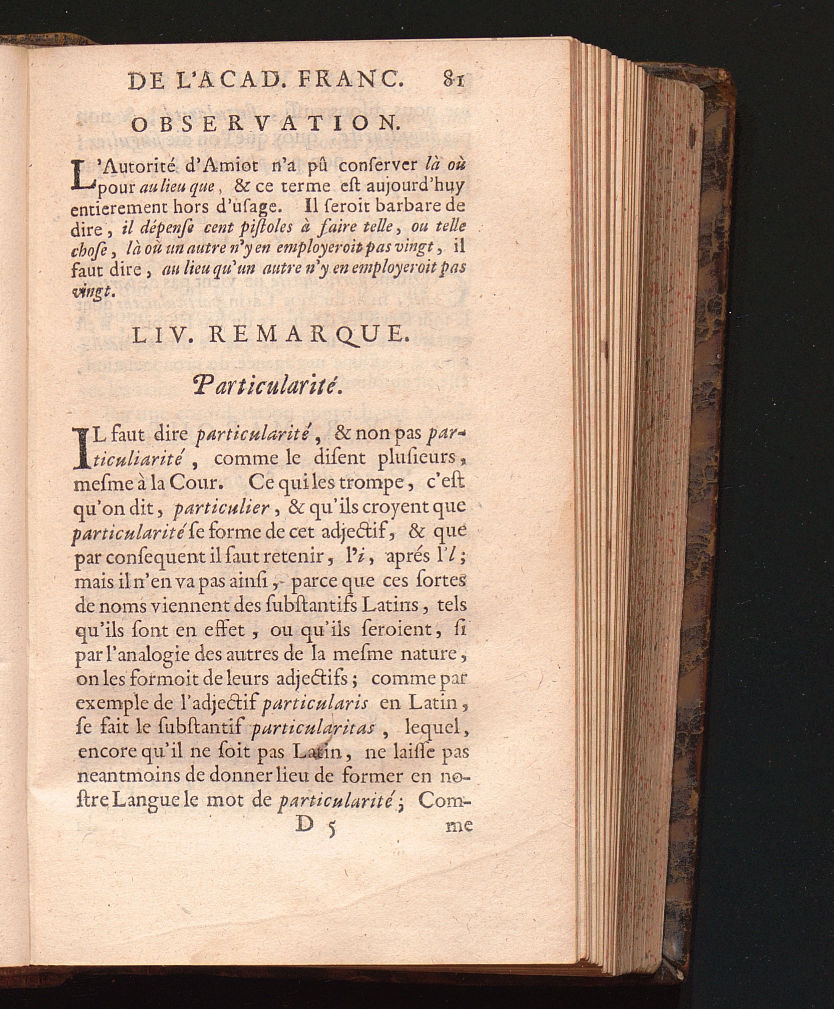 Observations De L'Academie Françoise Sur Les Remarques De M. De Vaugelas