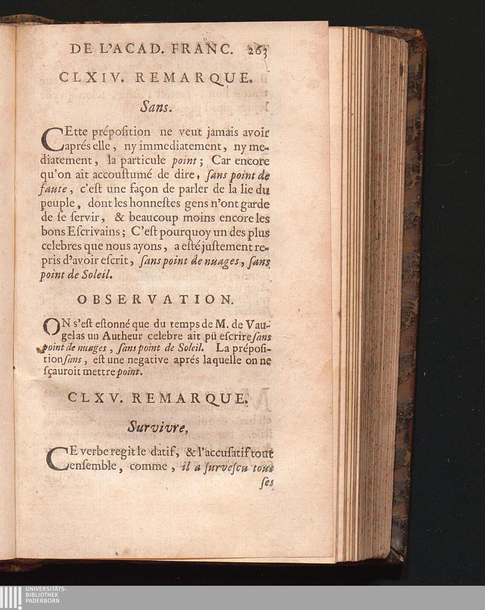 Observations De L'Academie Françoise Sur Les Remarques De M. De Vaugelas