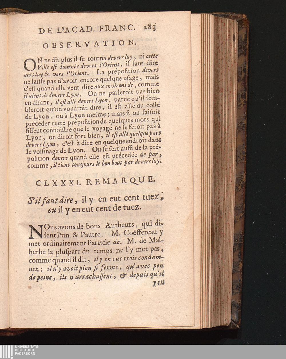 Observations De L'Academie Françoise Sur Les Remarques De M. De Vaugelas