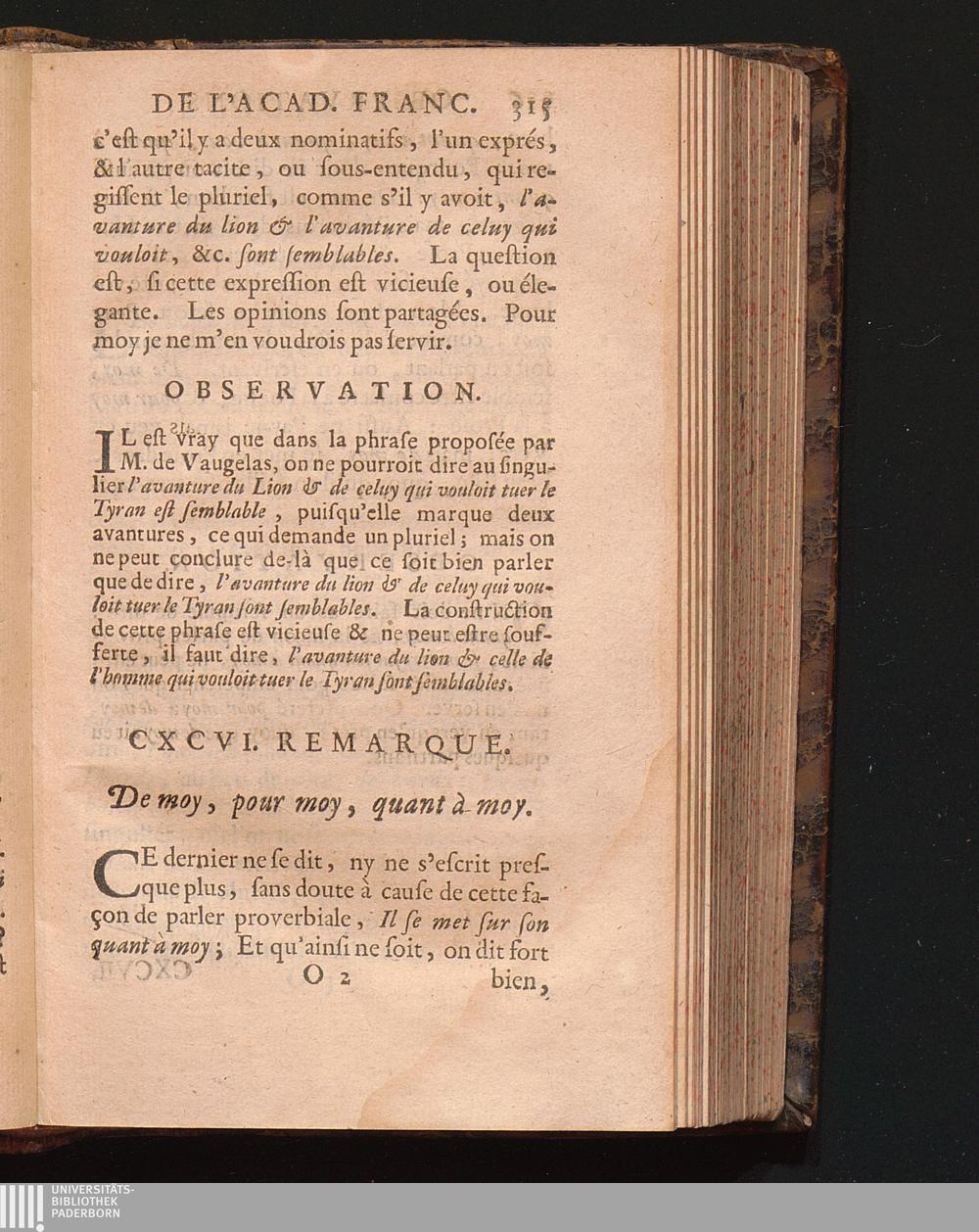 Observations De L'Academie Françoise Sur Les Remarques De M. De Vaugelas