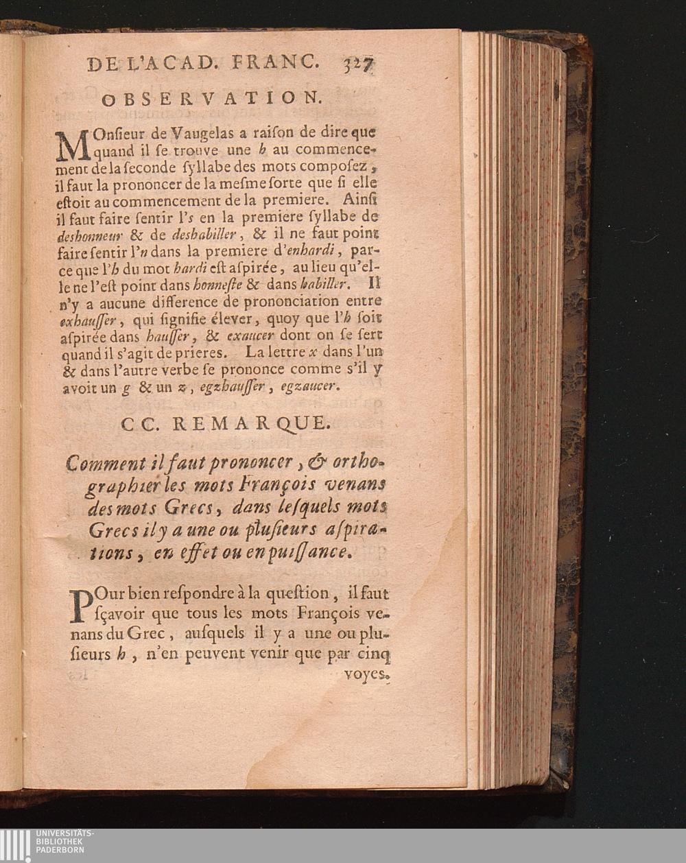 Observations De L'Academie Françoise Sur Les Remarques De M. De Vaugelas