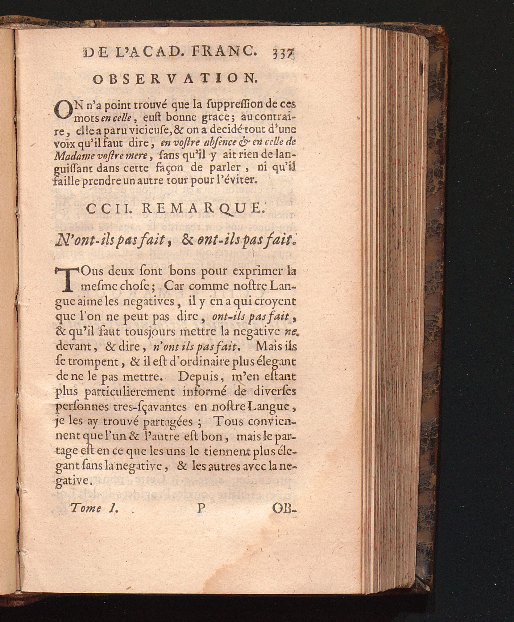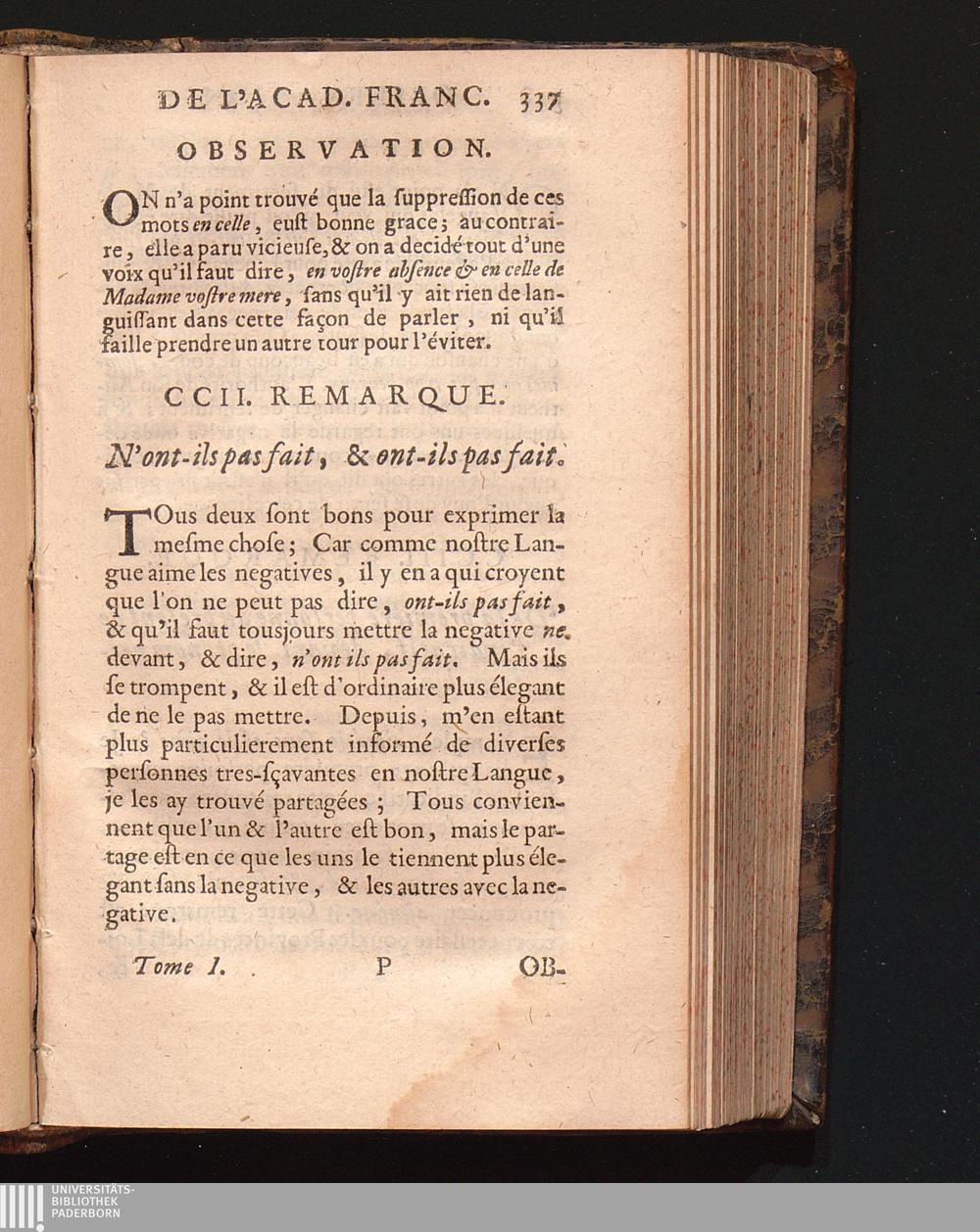 Observations De L'Academie Françoise Sur Les Remarques De M. De Vaugelas