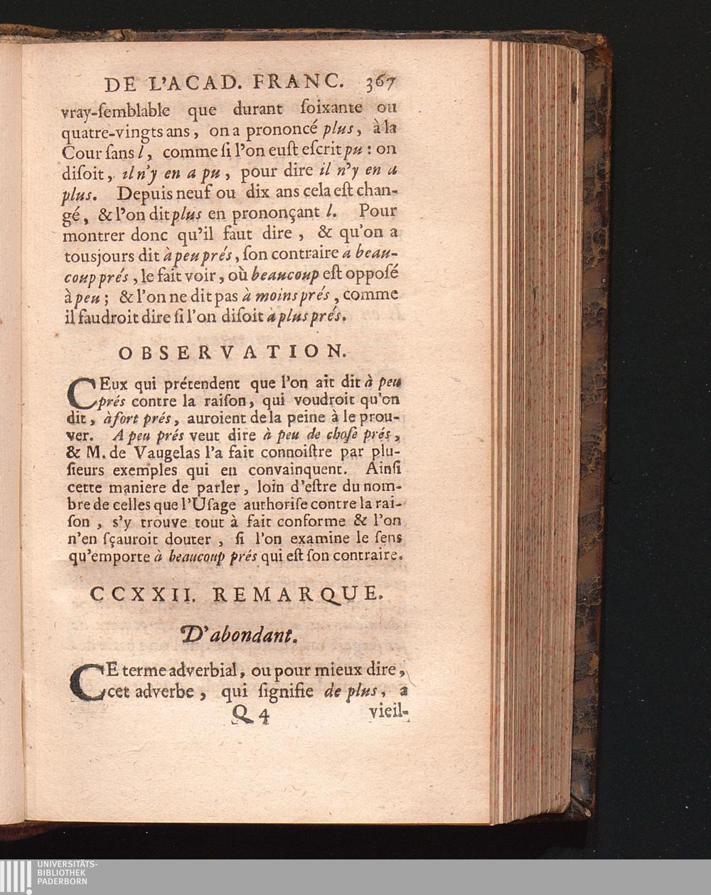 Observations De L'Academie Françoise Sur Les Remarques De M. De Vaugelas