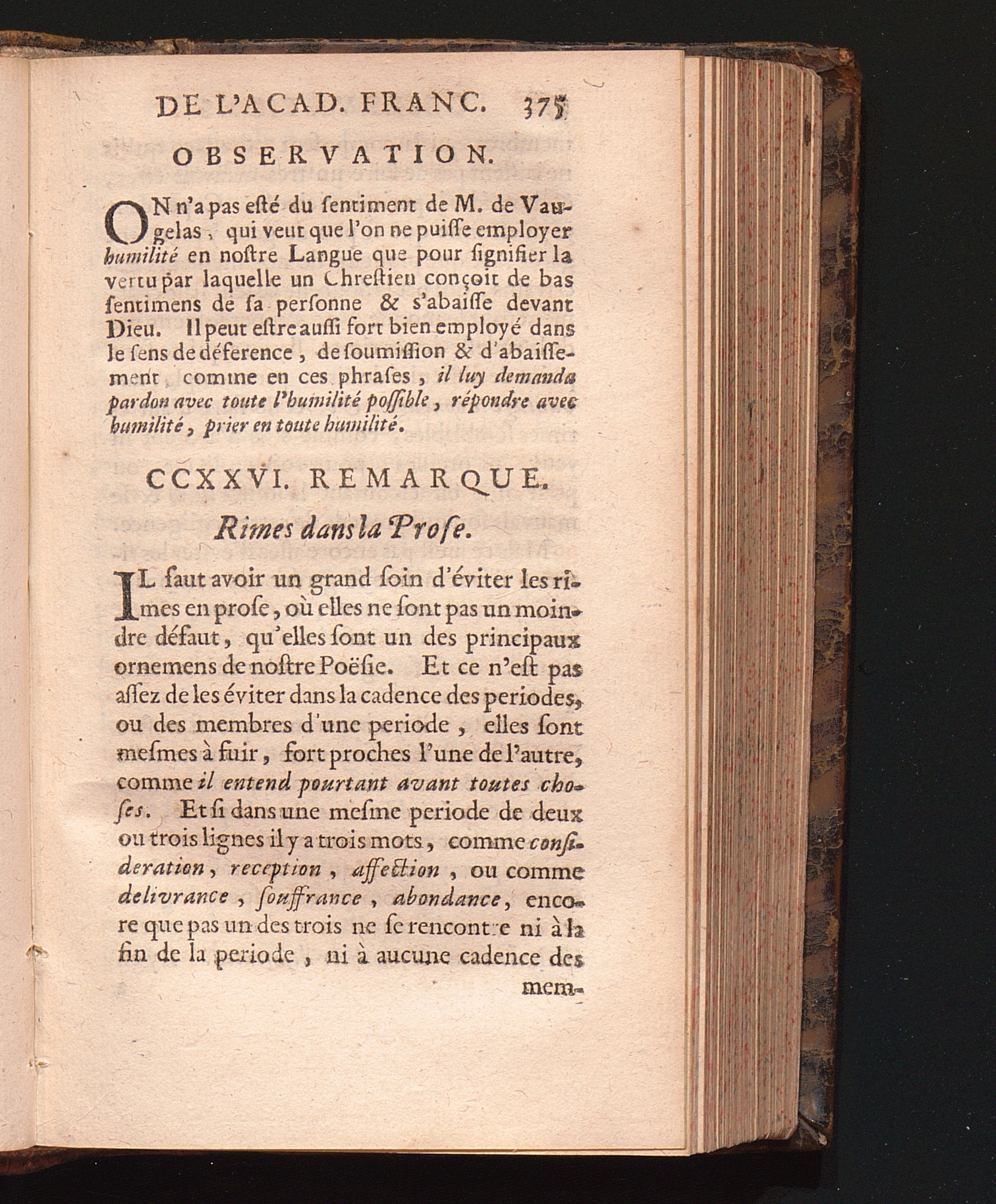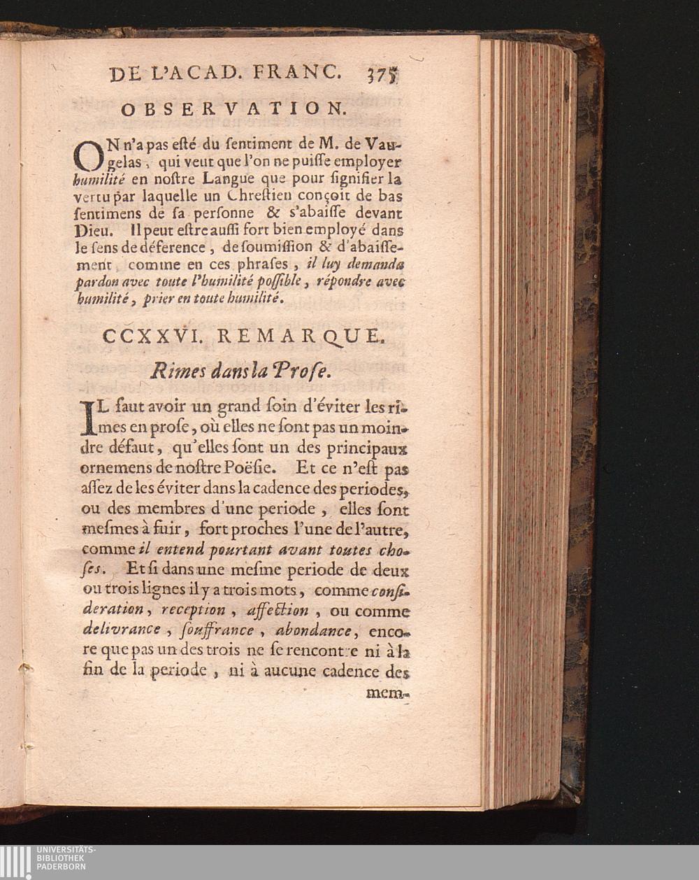 Observations De L'Academie Françoise Sur Les Remarques De M. De Vaugelas