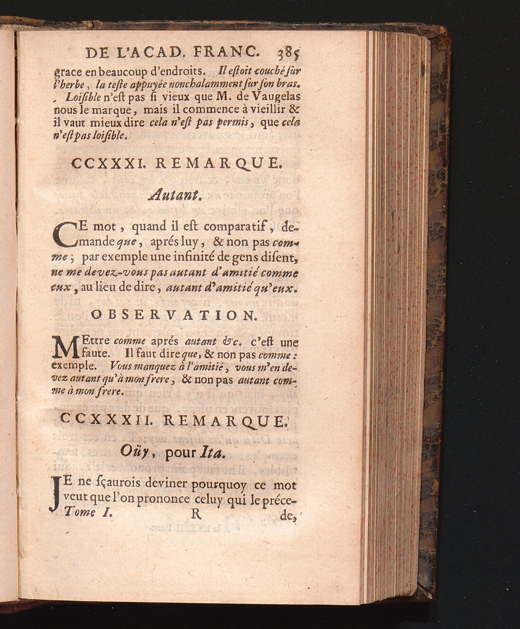 Observations De L'Academie Françoise Sur Les Remarques De M. De Vaugelas