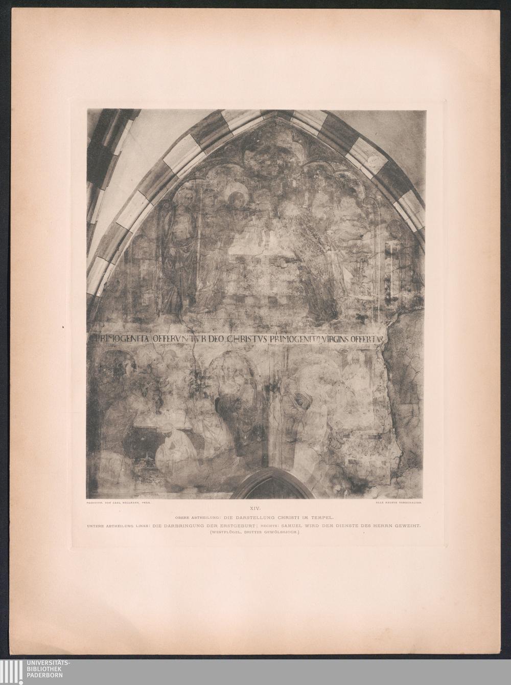 XIV. Obere Abtheilung: Die Darstellung Christi im Tempel. Untere Abtheilung links:[...]