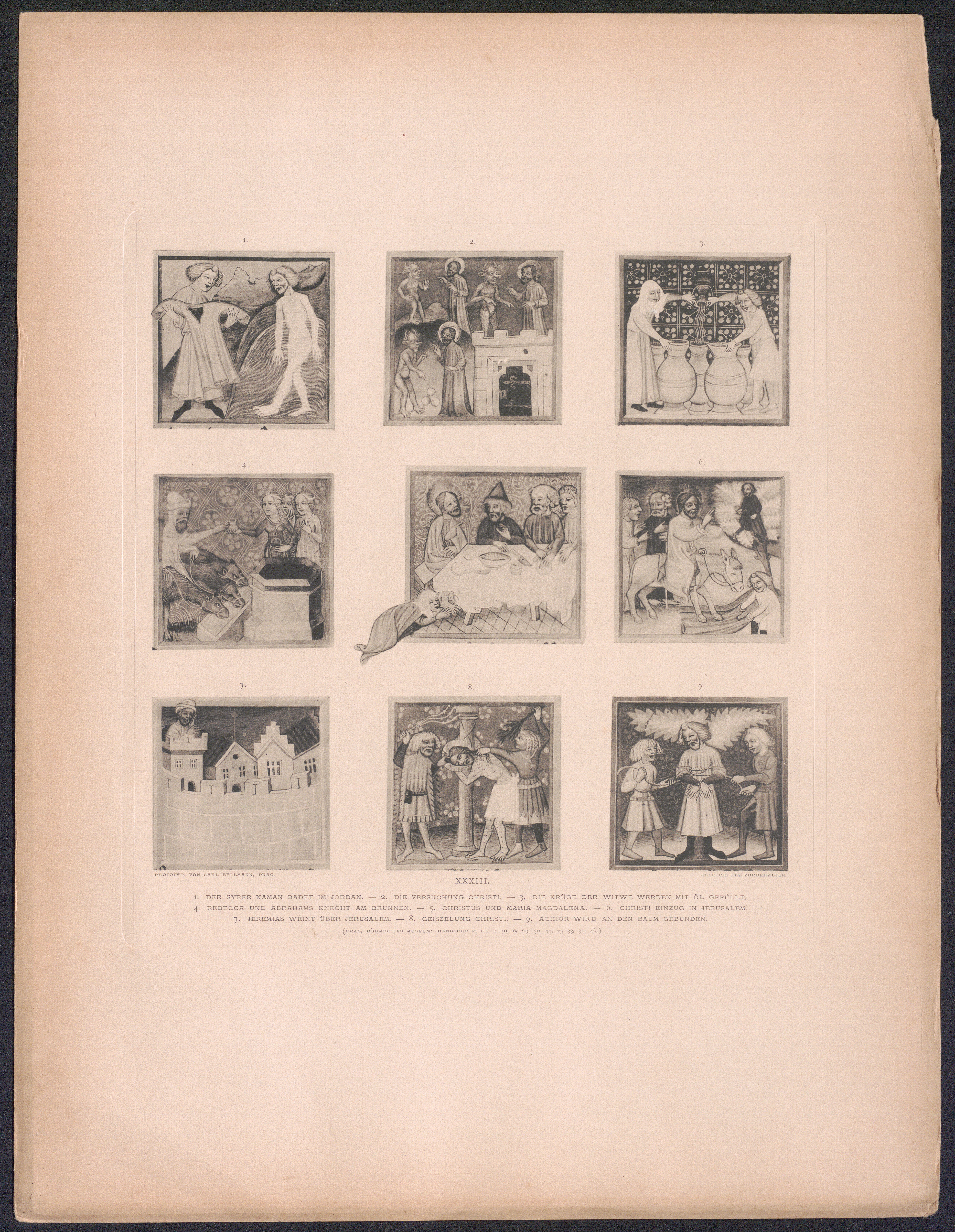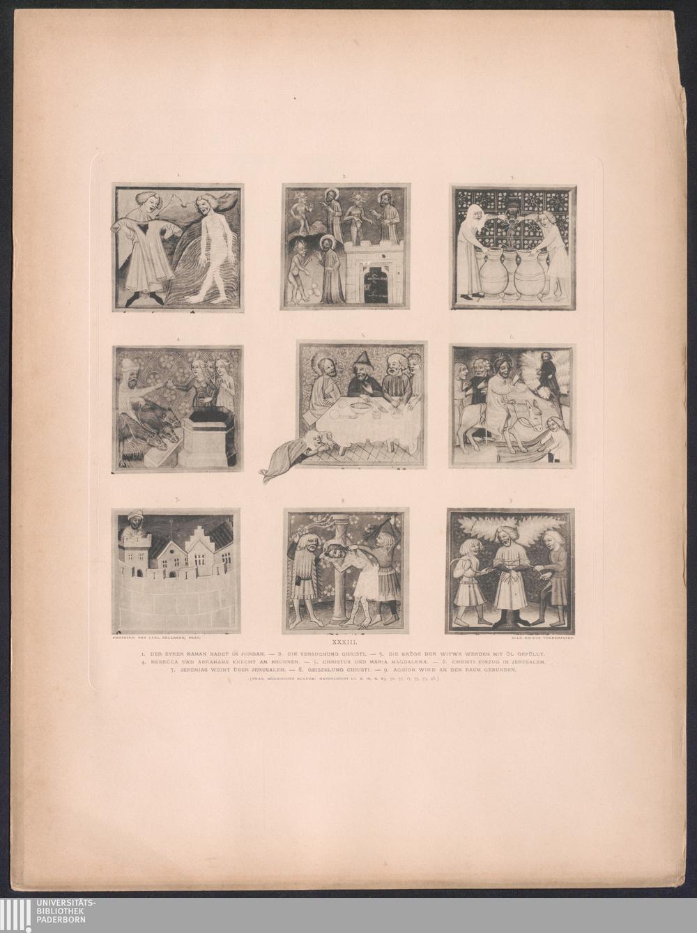 XXXIII. 1. Der Syrer Naman badet im Jordan. - 2. Die Versuchung Christi. - 3. Die[...]