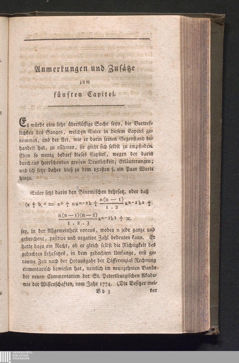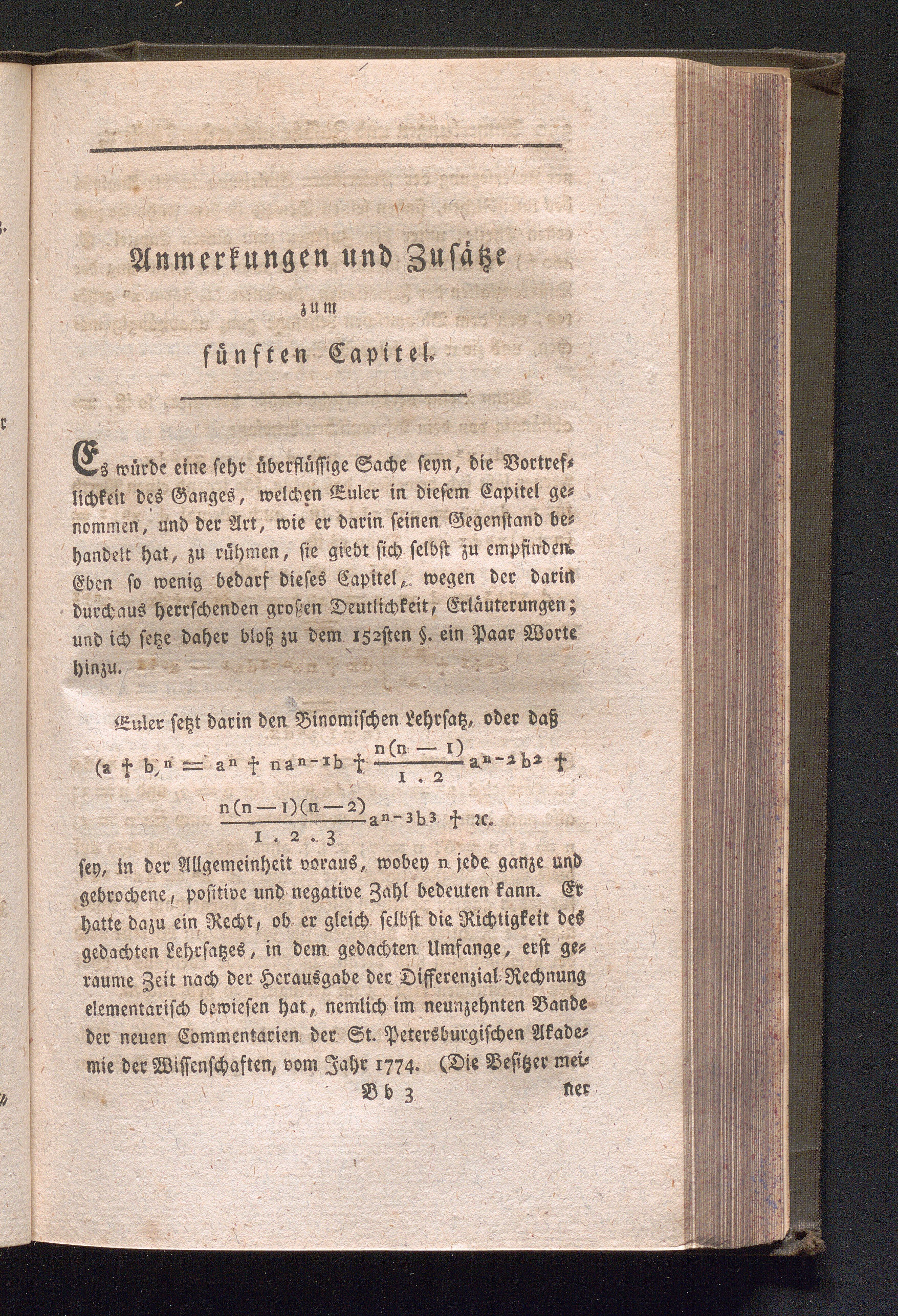 Anmerkungen und Zusätze zum fünften Capitel.