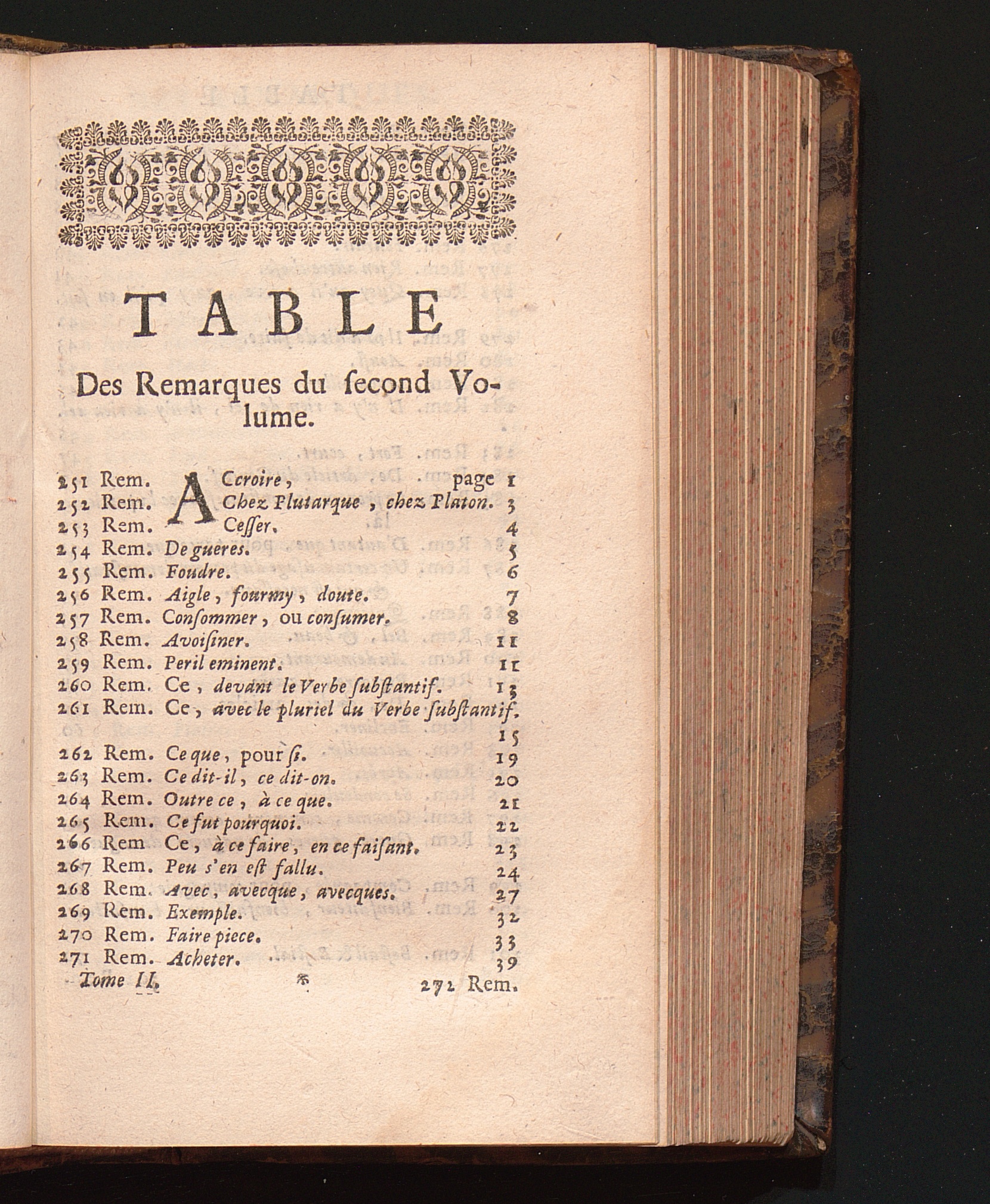 Table Des Remarques du second Volume.