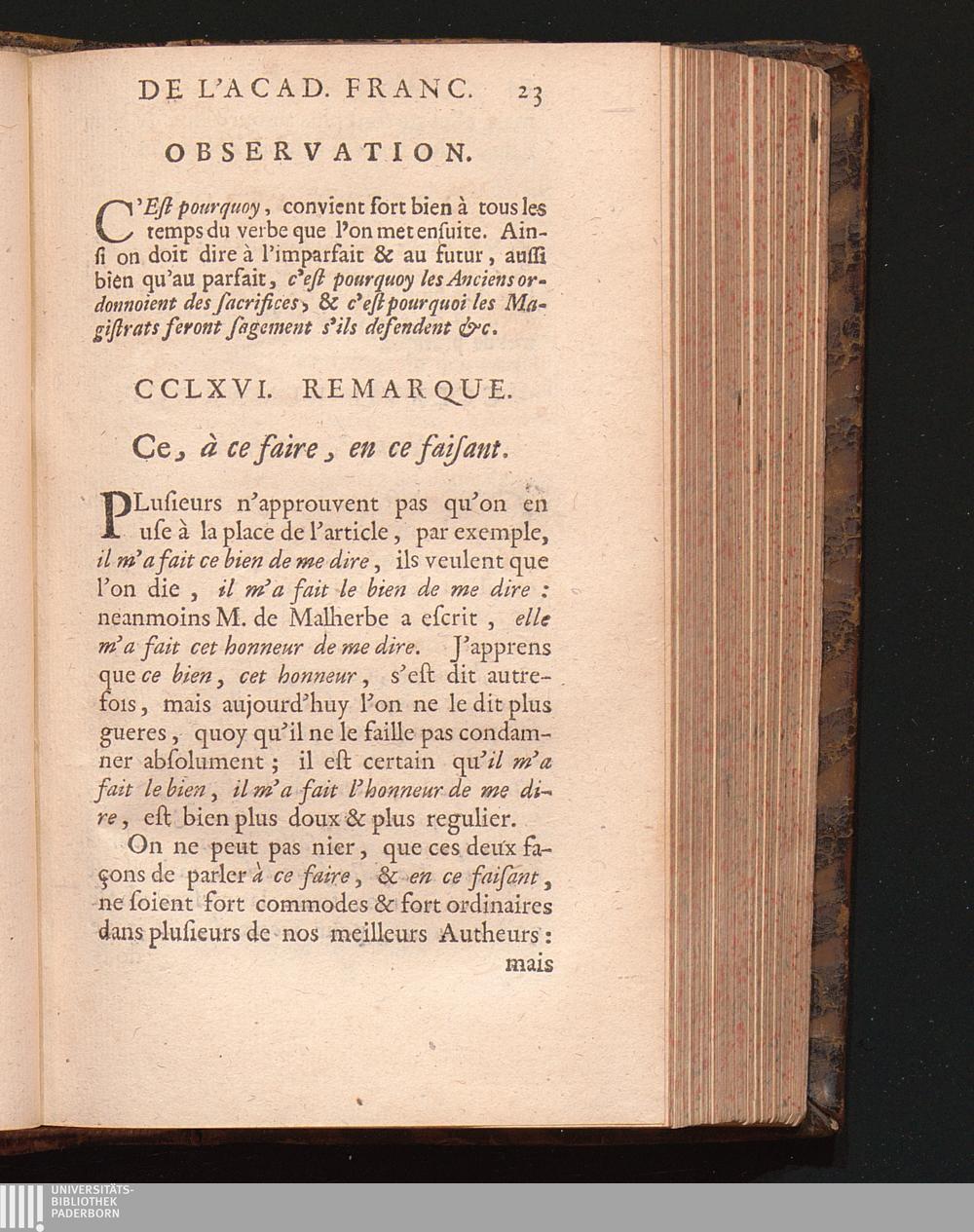 Observations De L'Academie Françoise Sur Les Remarques De M. De Vaugelas