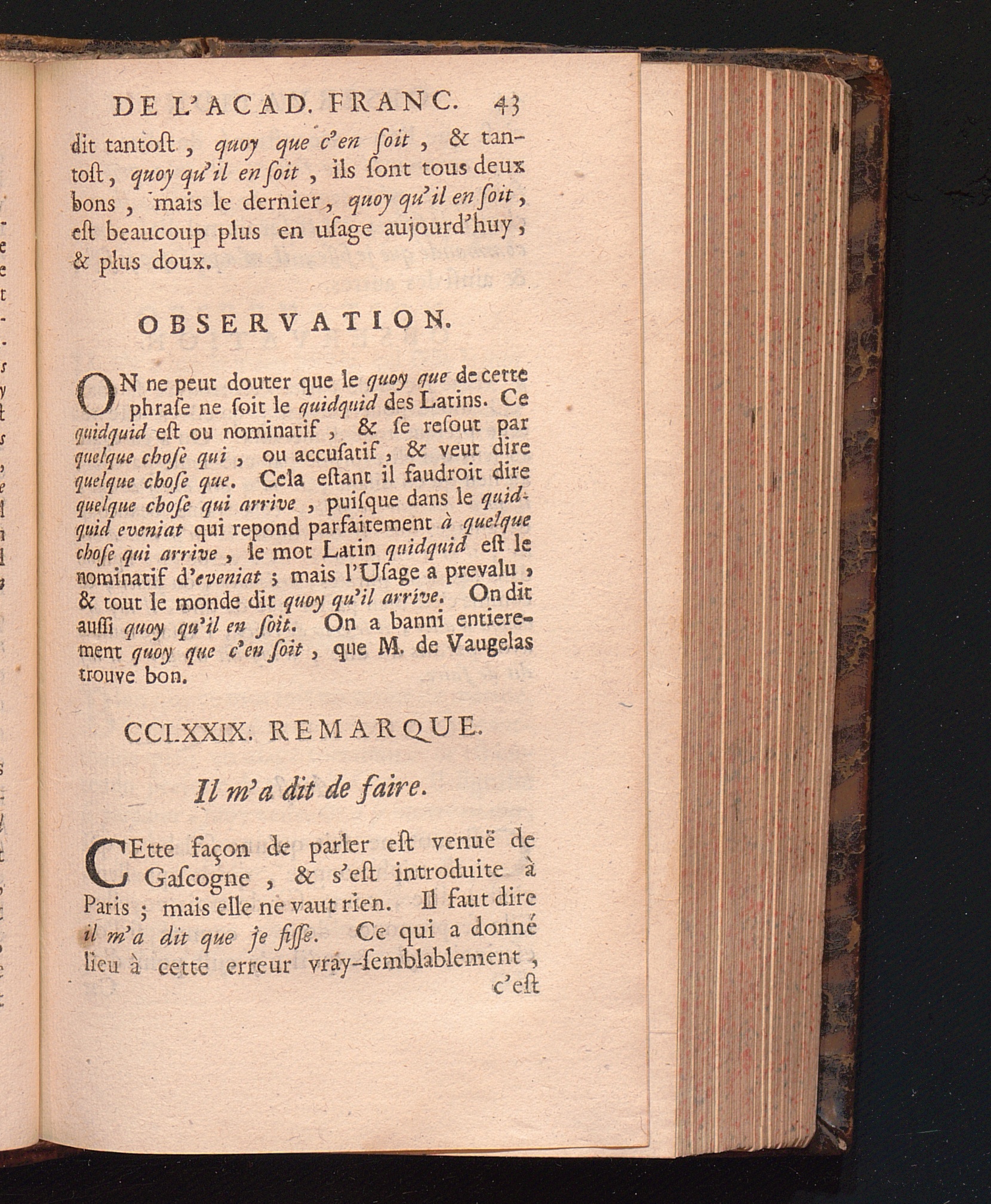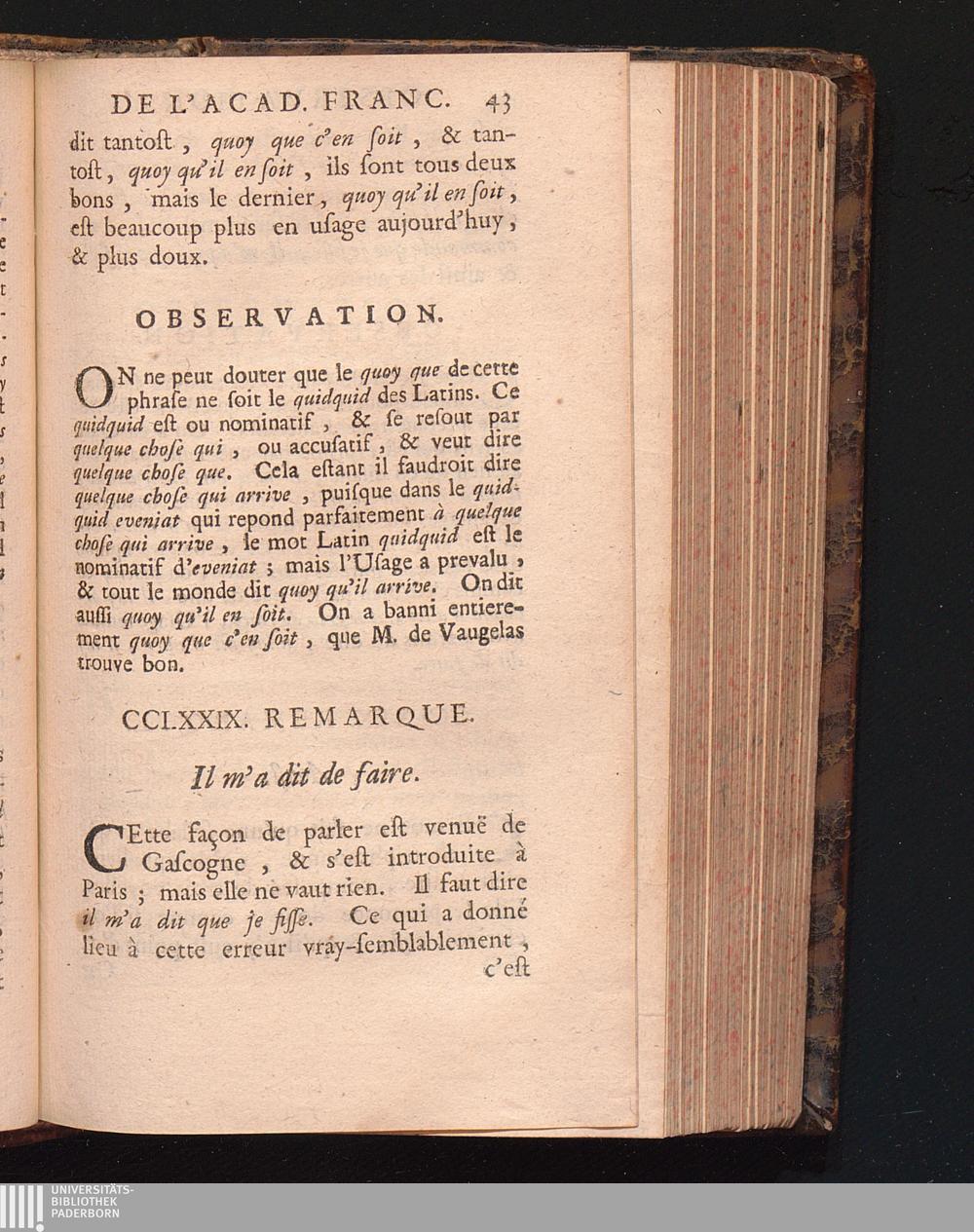 Observations De L'Academie Françoise Sur Les Remarques De M. De Vaugelas