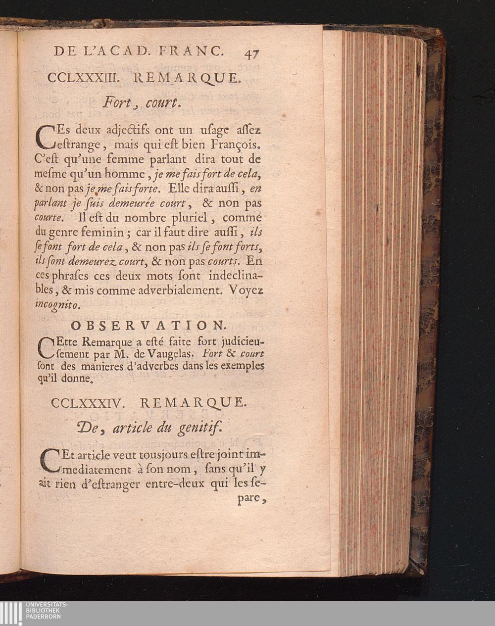 Observations De L'Academie Françoise Sur Les Remarques De M. De Vaugelas
