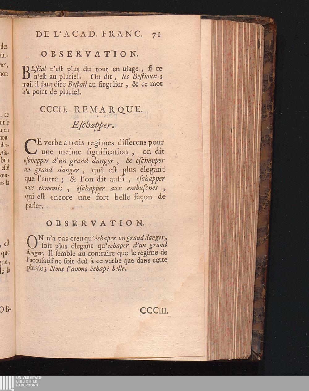 Observations De L'Academie Françoise Sur Les Remarques De M. De Vaugelas