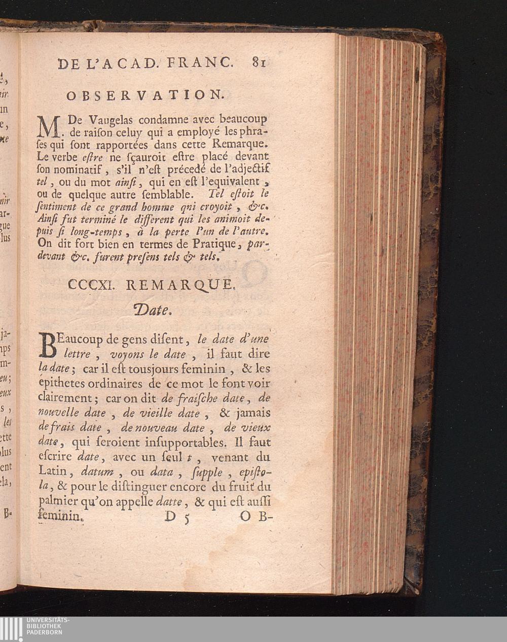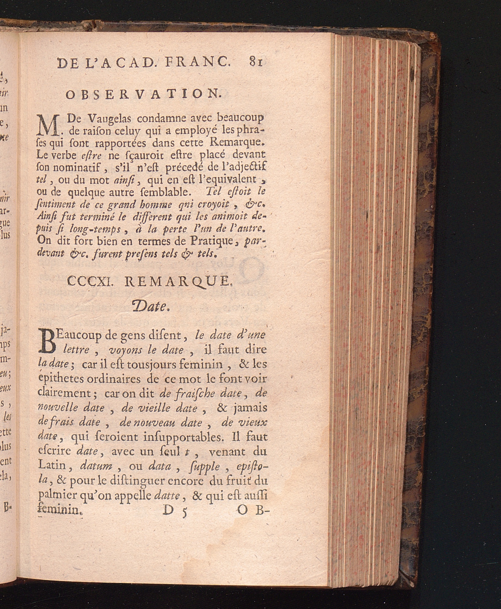 Observations De L'Academie Françoise Sur Les Remarques De M. De Vaugelas