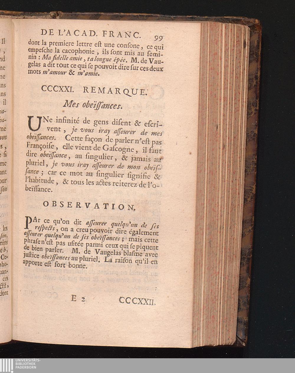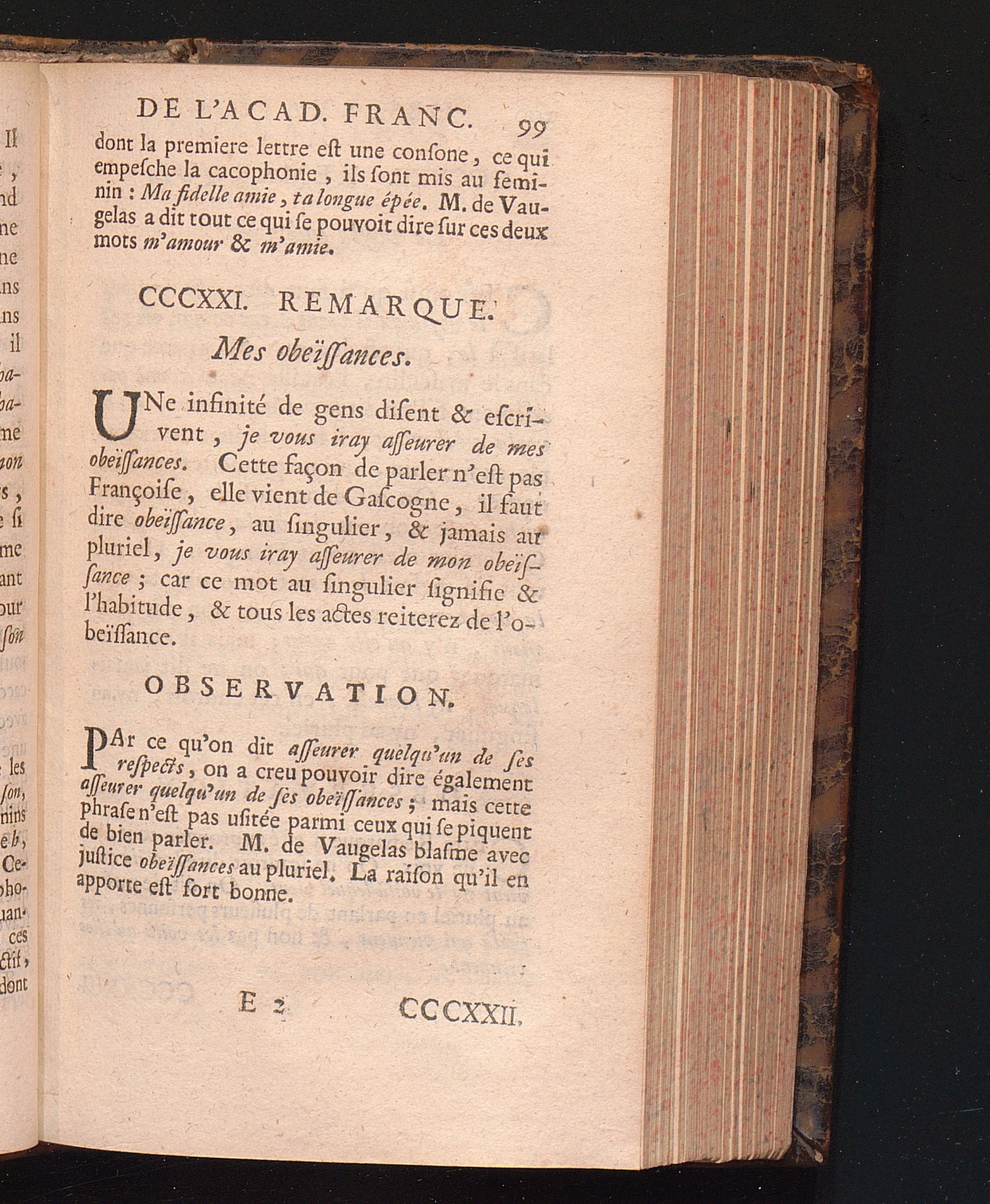 Observations De L'Academie Françoise Sur Les Remarques De M. De Vaugelas