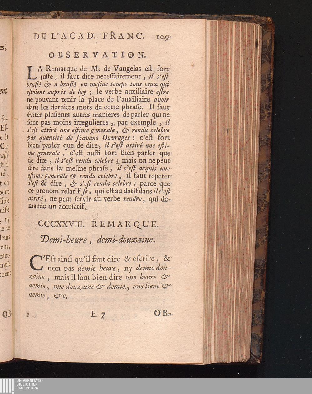 Observations De L'Academie Françoise Sur Les Remarques De M. De Vaugelas