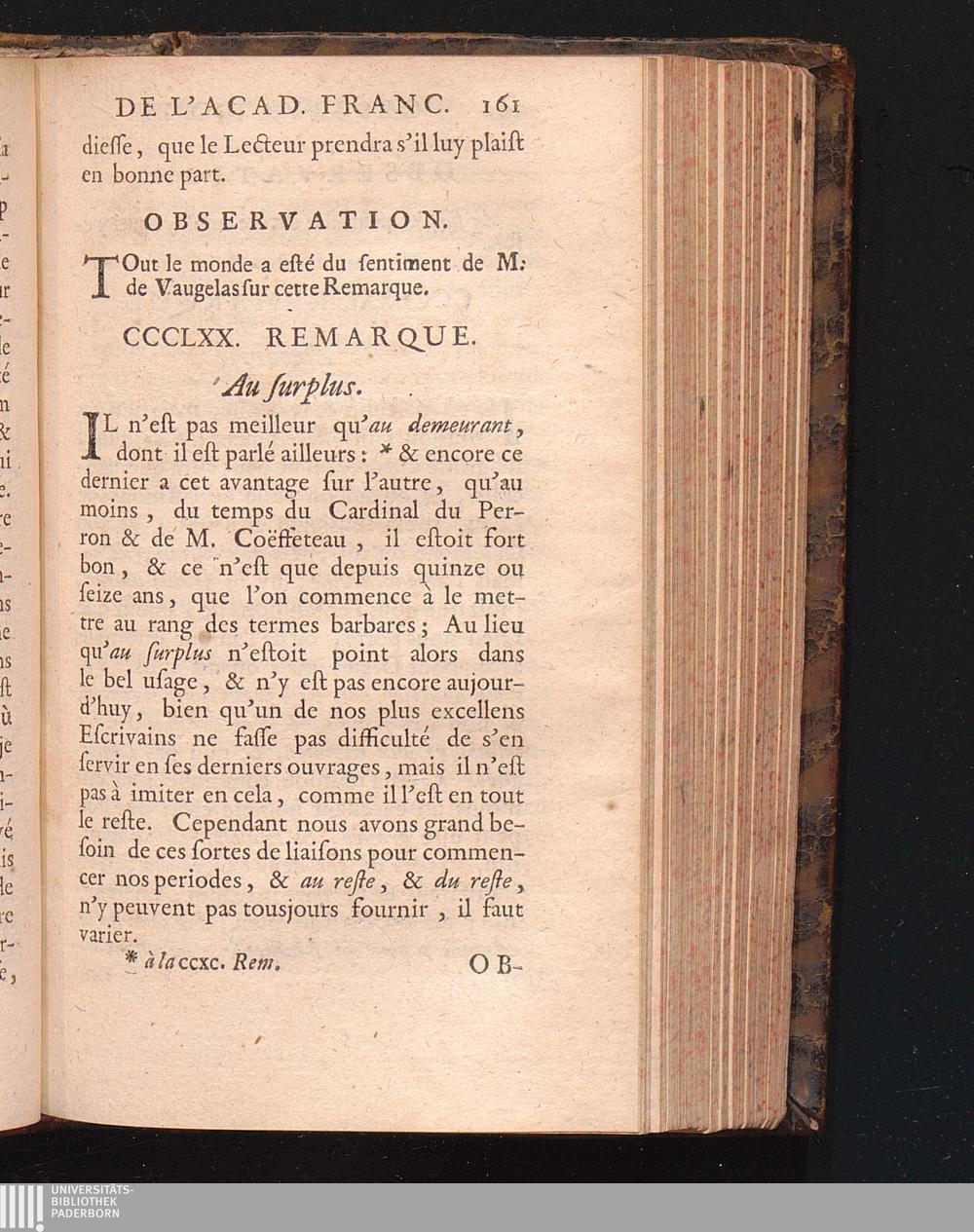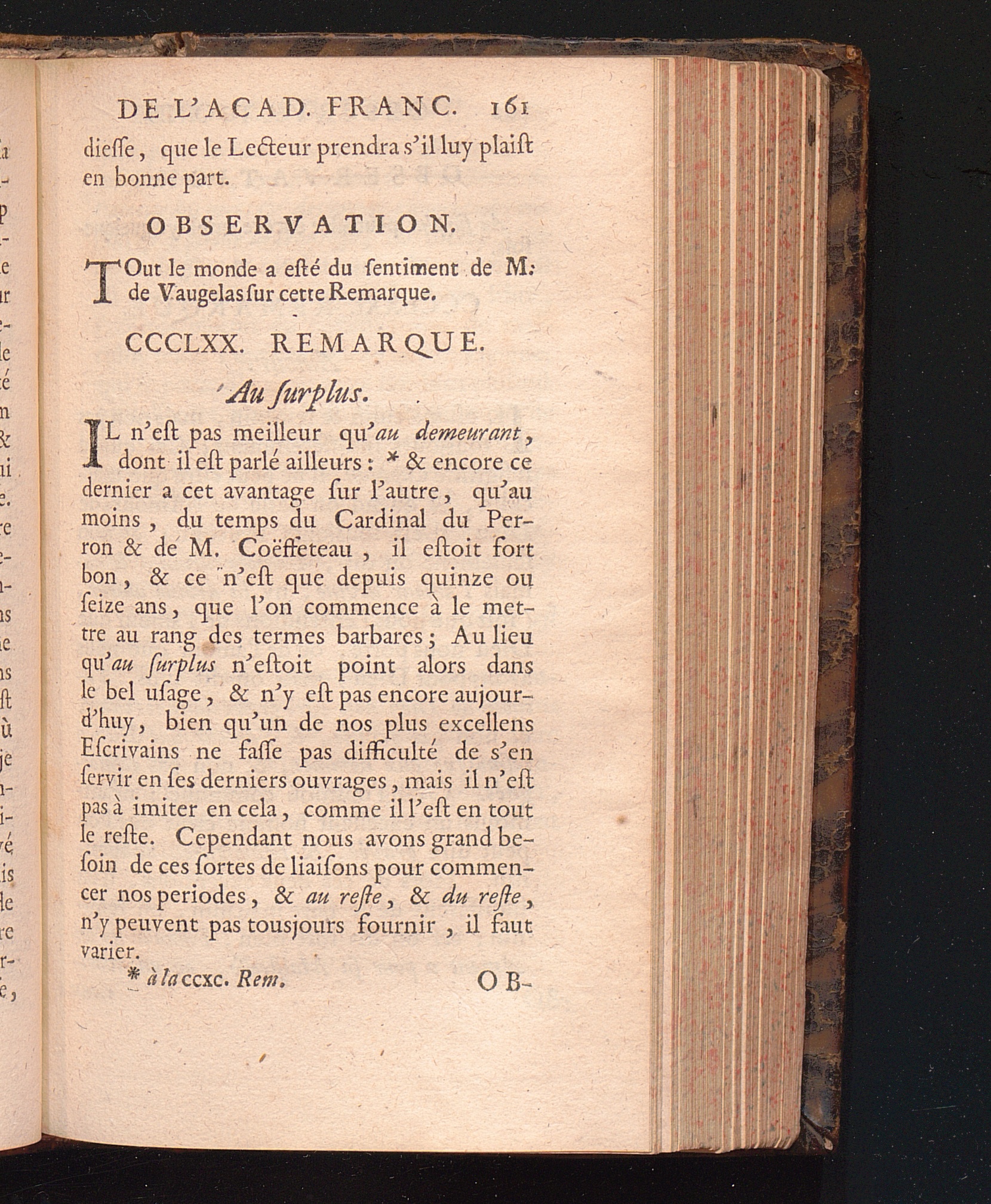 Observations De L'Academie Françoise Sur Les Remarques De M. De Vaugelas