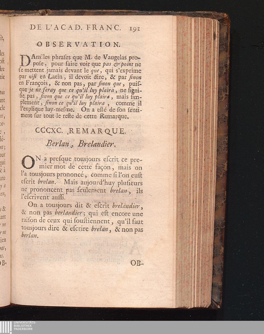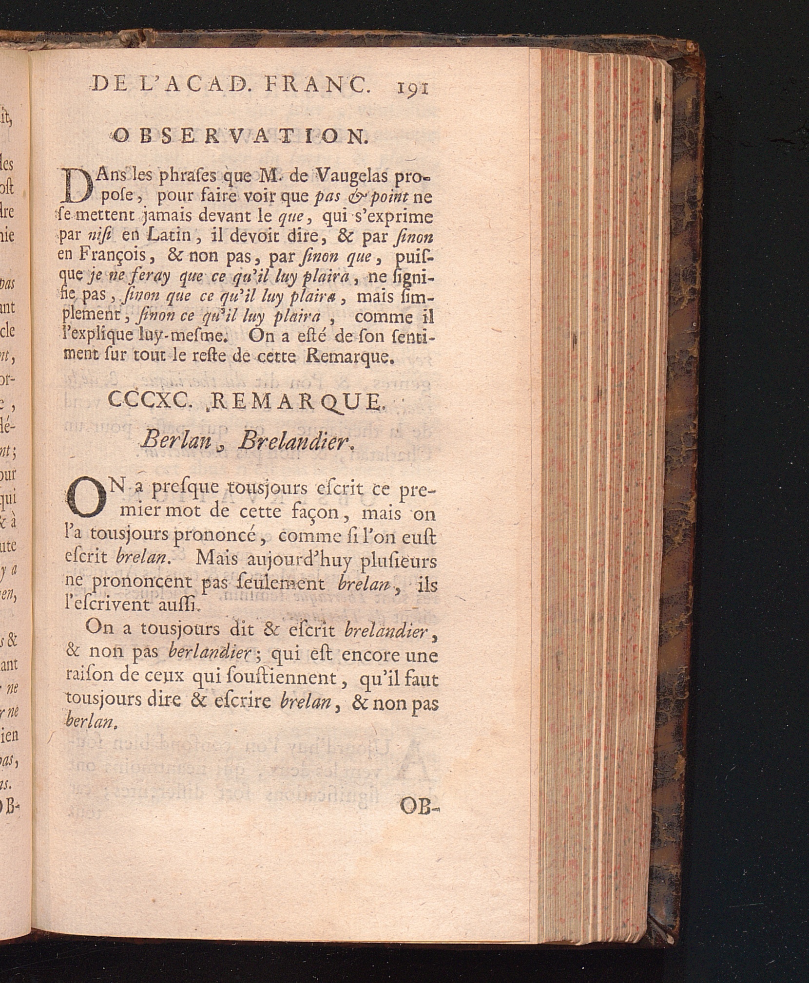 Observations De L'Academie Françoise Sur Les Remarques De M. De Vaugelas