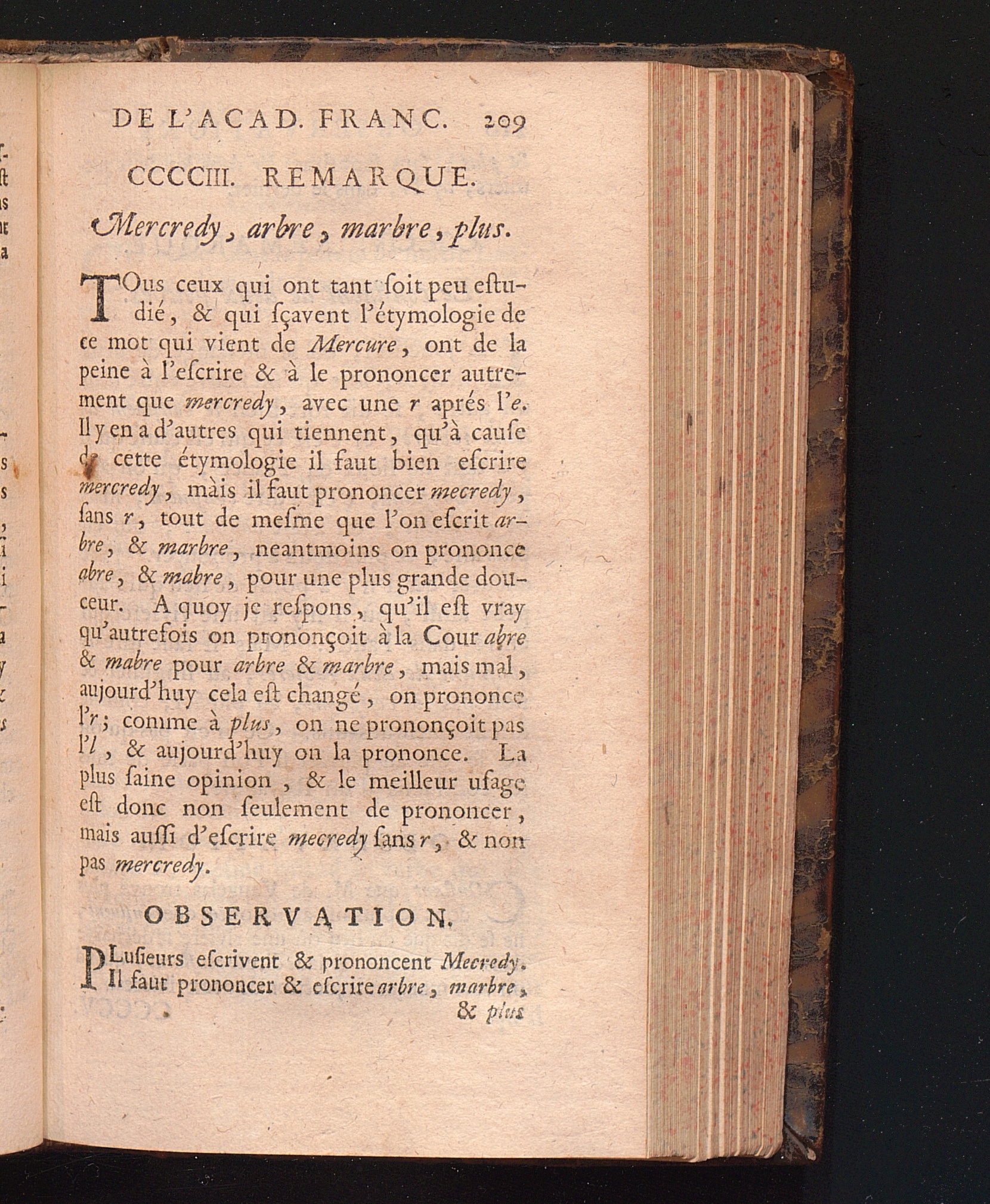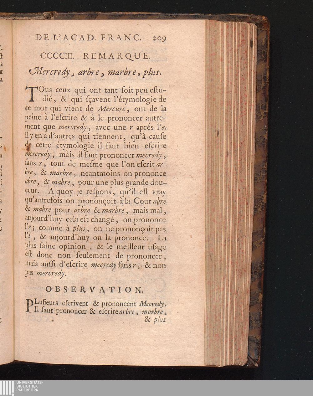 Observations De L'Academie Françoise Sur Les Remarques De M. De Vaugelas