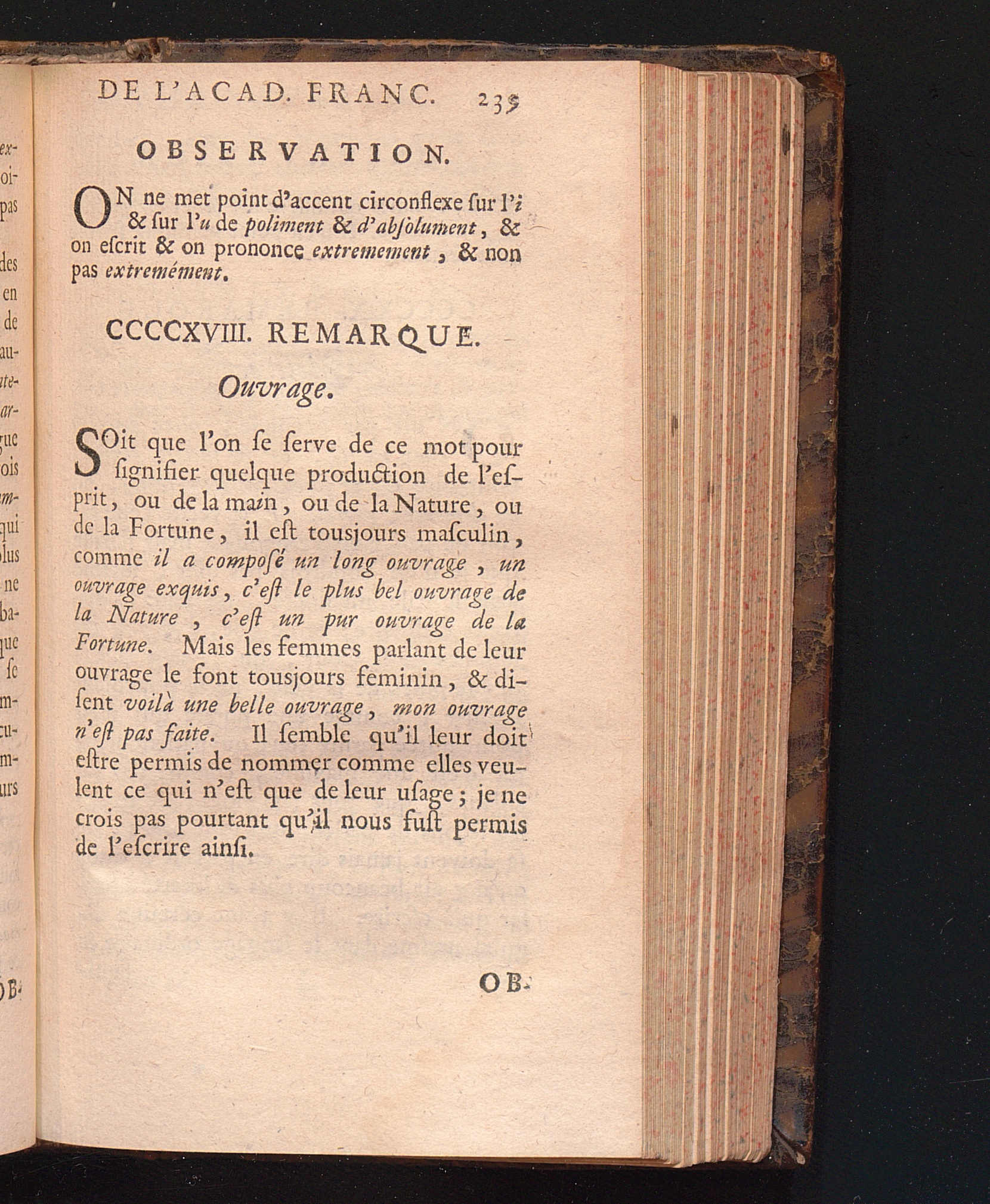 Observations De L'Academie Françoise Sur Les Remarques De M. De Vaugelas