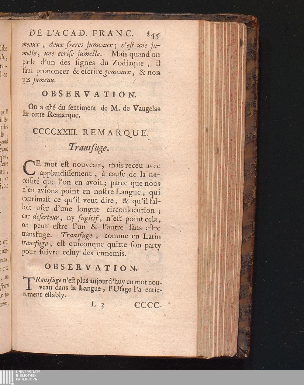 Observations De L'Academie Françoise Sur Les Remarques De M. De Vaugelas