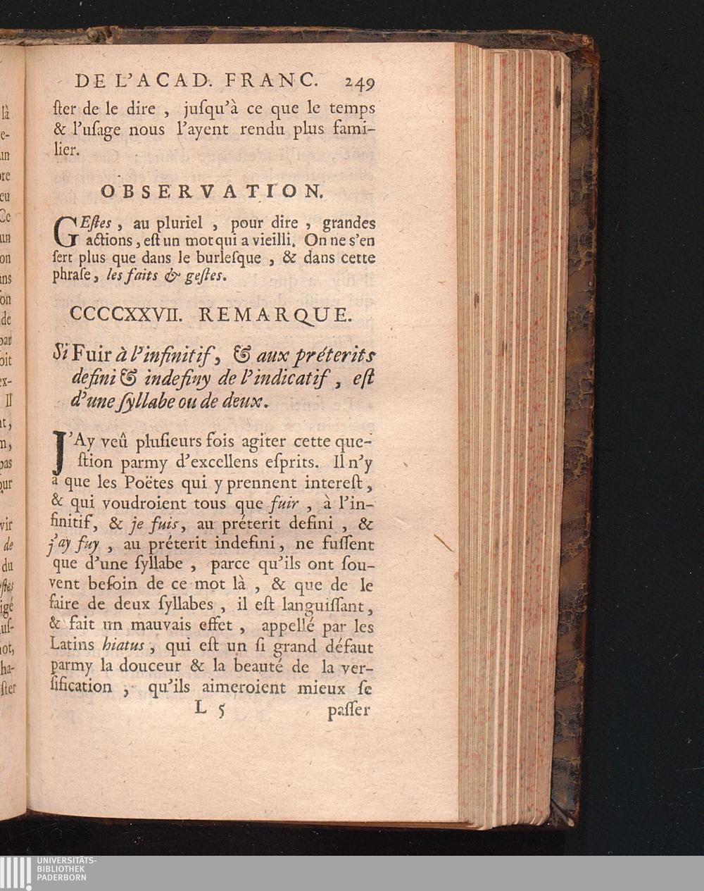 127 [i. e. 427] Rem. Si Fuïr à l'infinitif, & aux preterits defini & indefini de[...]