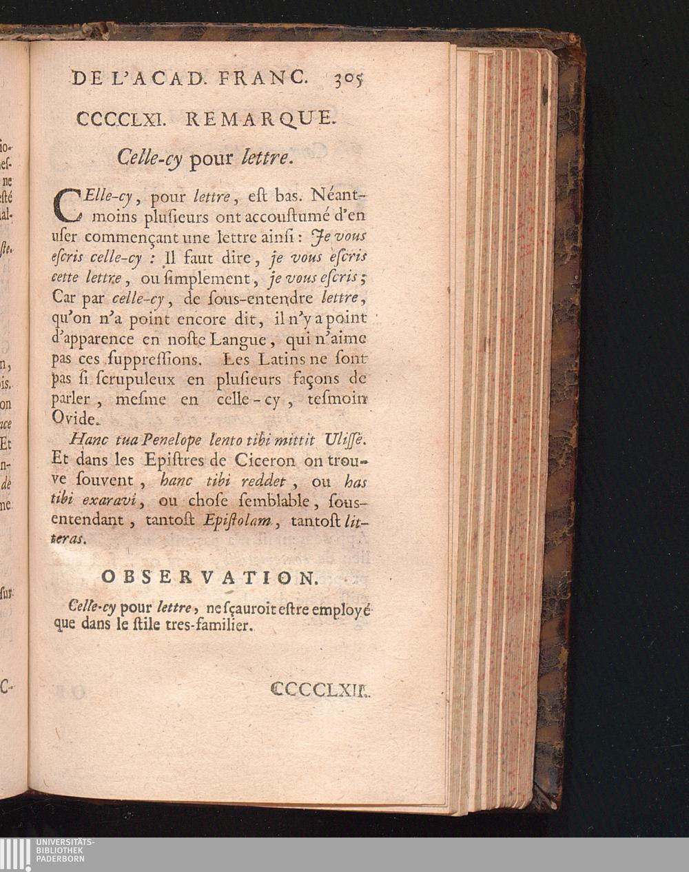 Observations De L'Academie Françoise Sur Les Remarques De M. De Vaugelas