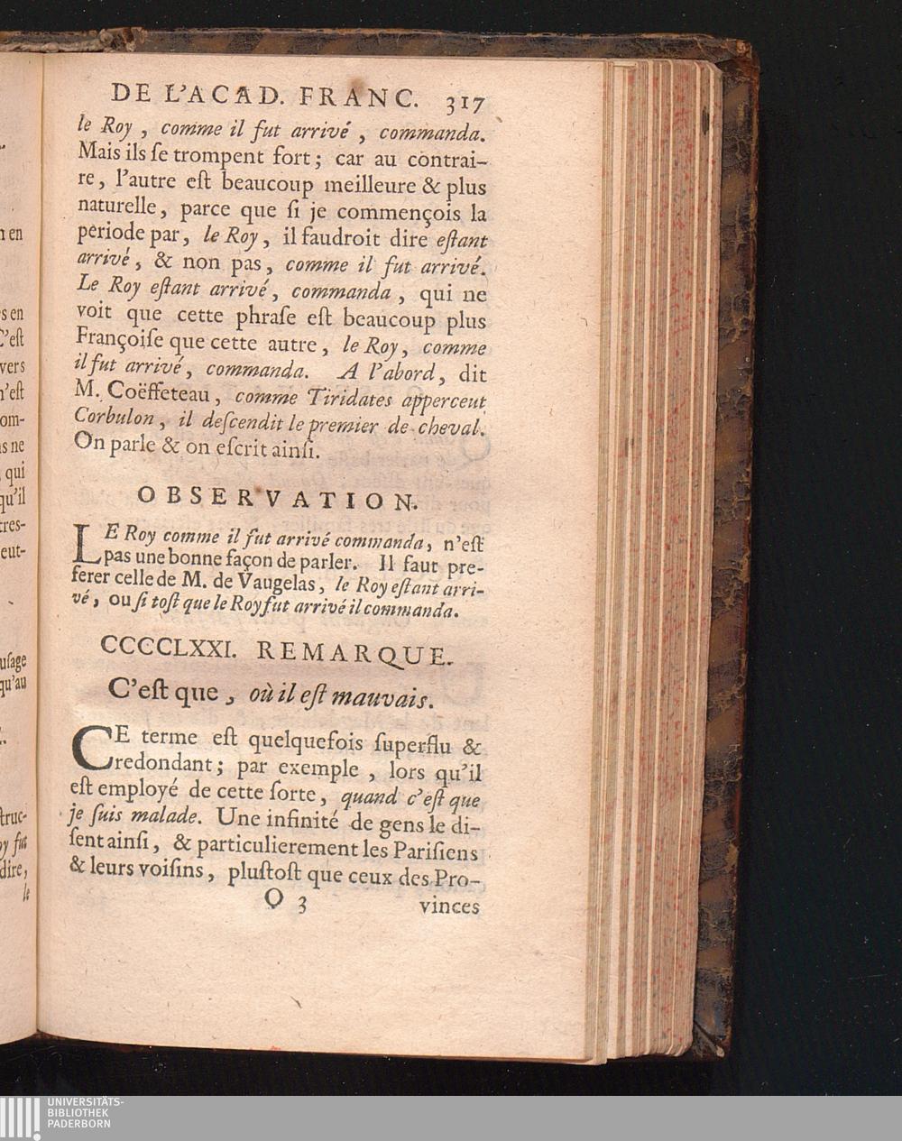 Observations De L'Academie Françoise Sur Les Remarques De M. De Vaugelas
