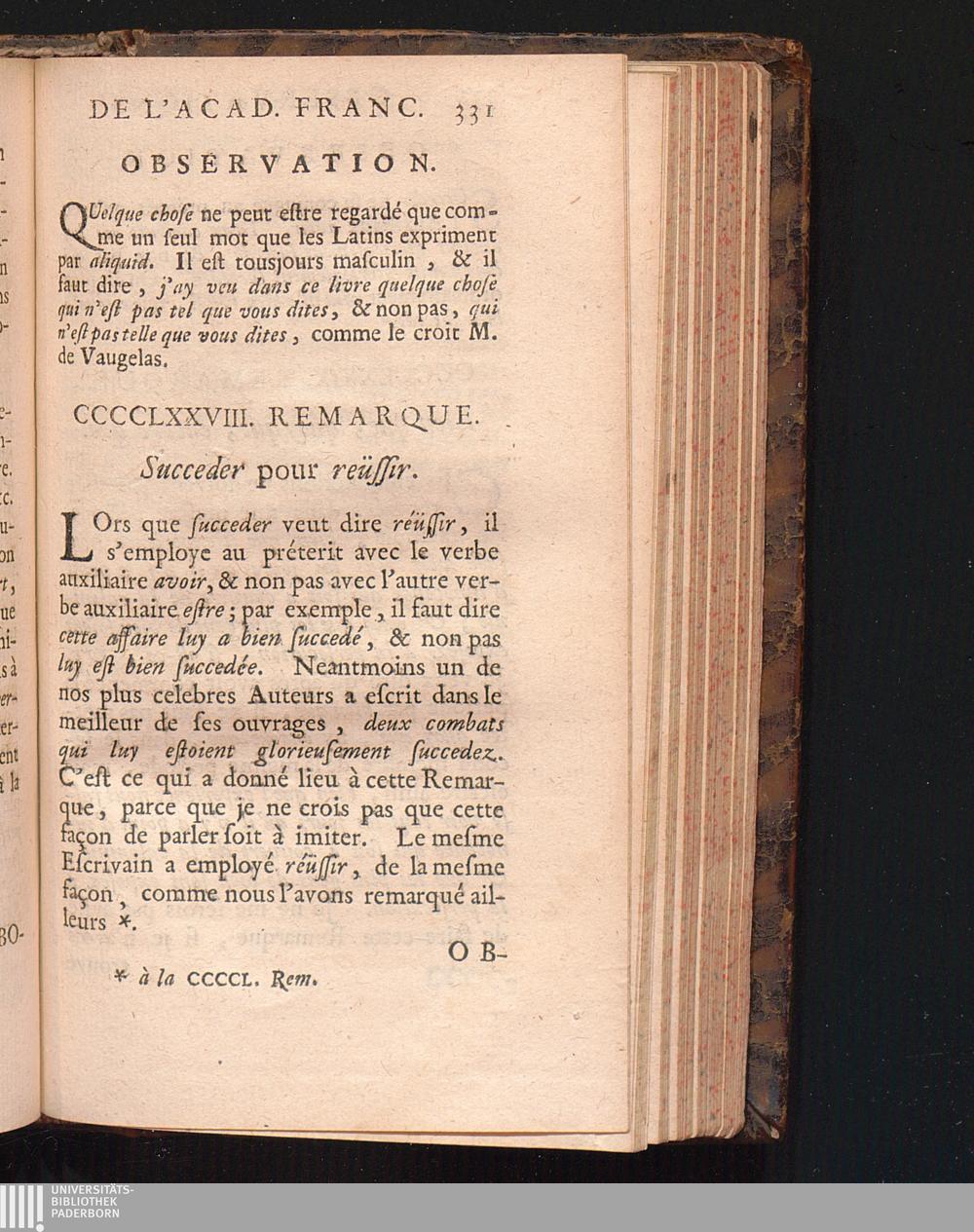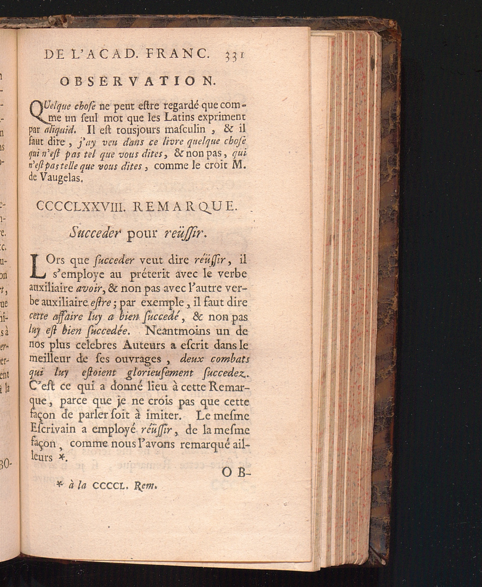 Observations De L'Academie Françoise Sur Les Remarques De M. De Vaugelas