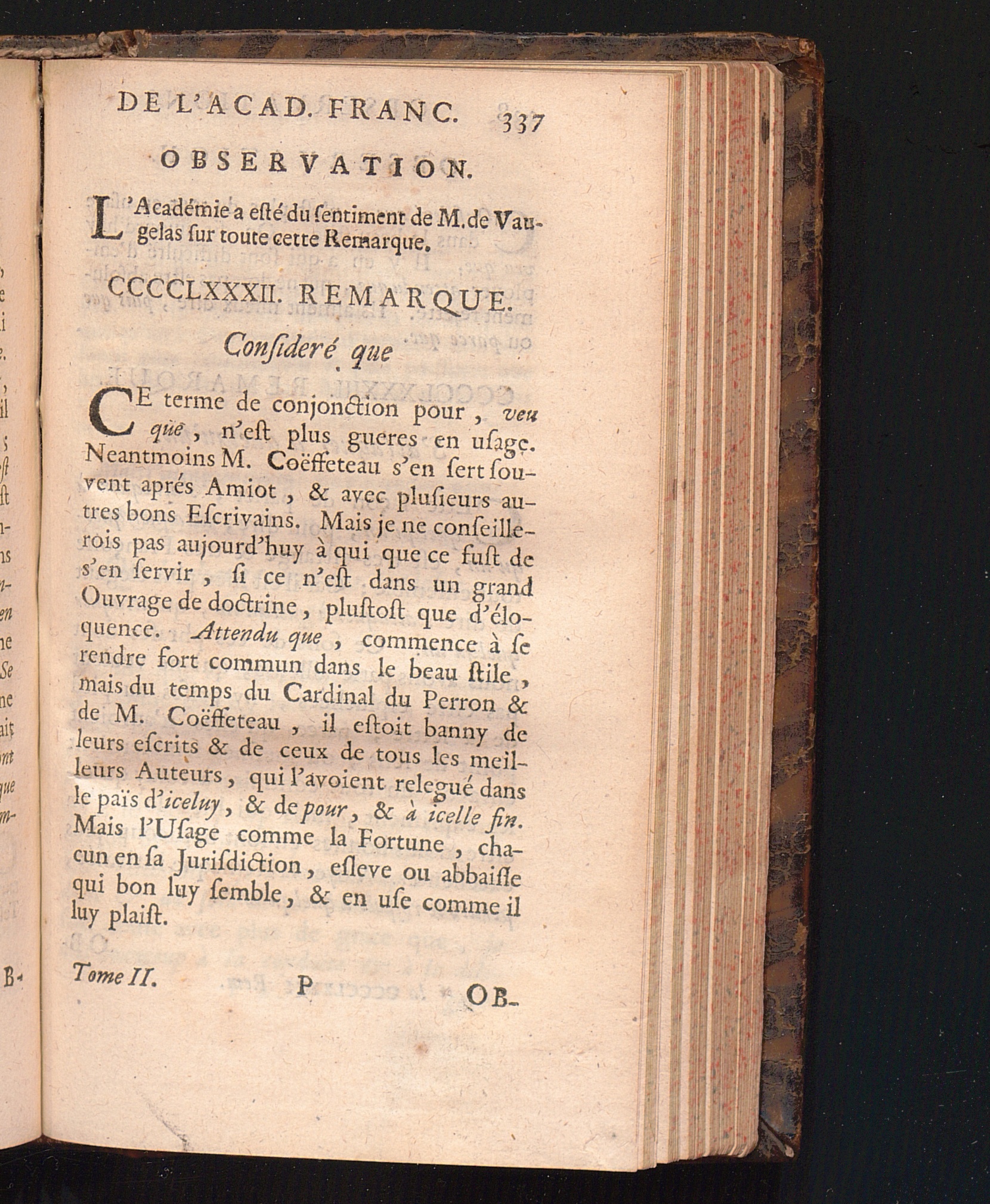 Observations De L'Academie Françoise Sur Les Remarques De M. De Vaugelas