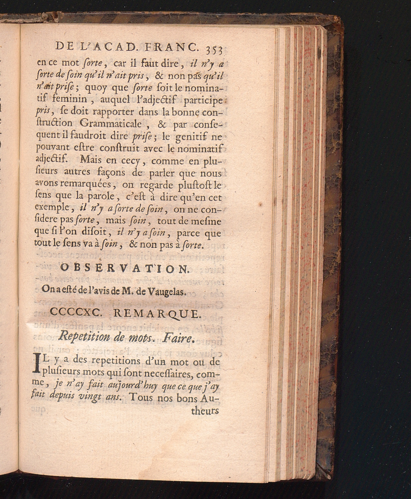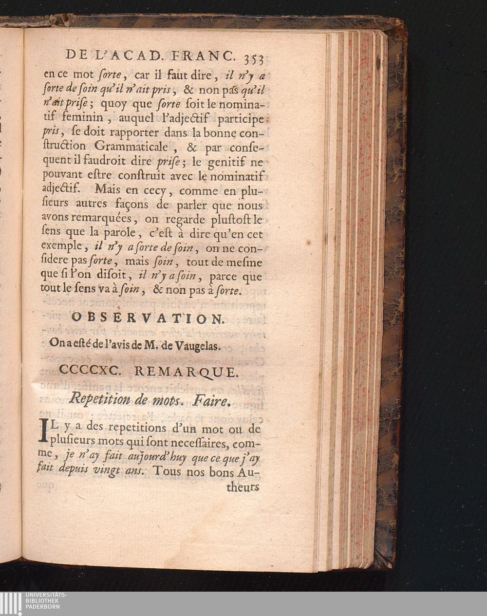 Observations De L'Academie Françoise Sur Les Remarques De M. De Vaugelas