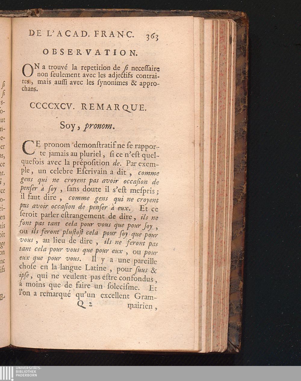 Observations De L'Academie Françoise Sur Les Remarques De M. De Vaugelas