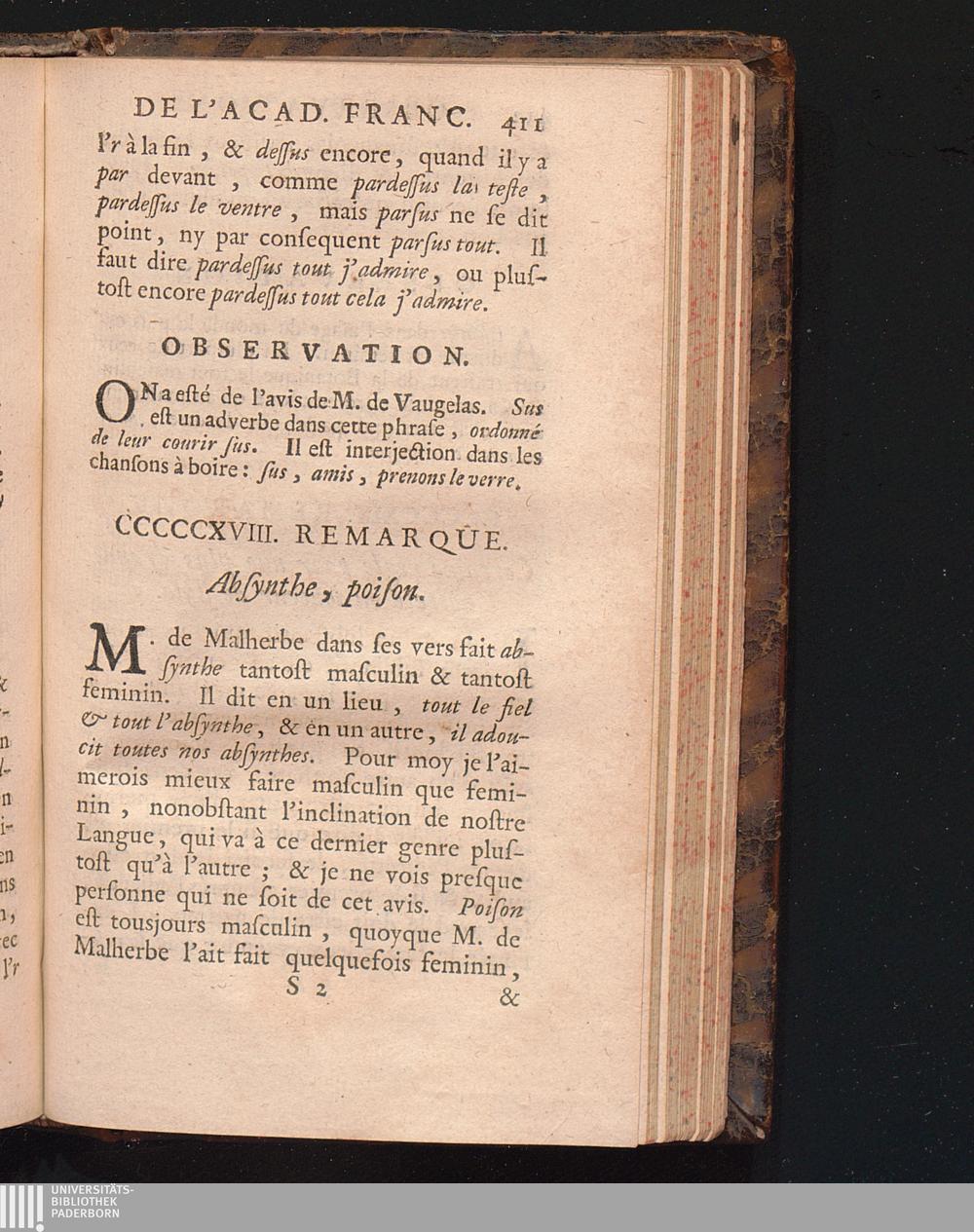 Observations De L'Academie Françoise Sur Les Remarques De M. De Vaugelas
