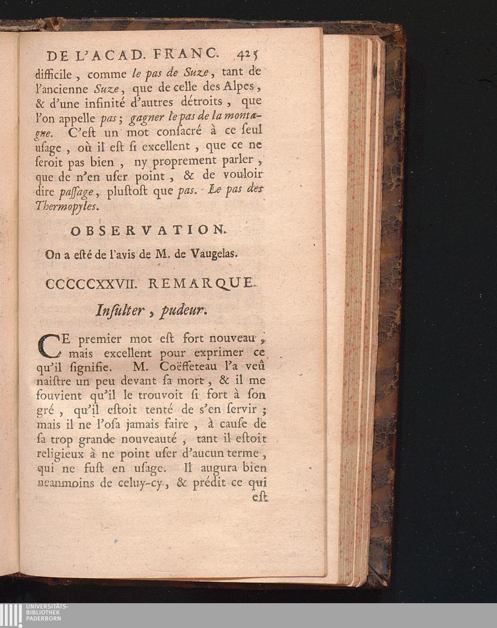 Observations De L'Academie Françoise Sur Les Remarques De M. De Vaugelas
