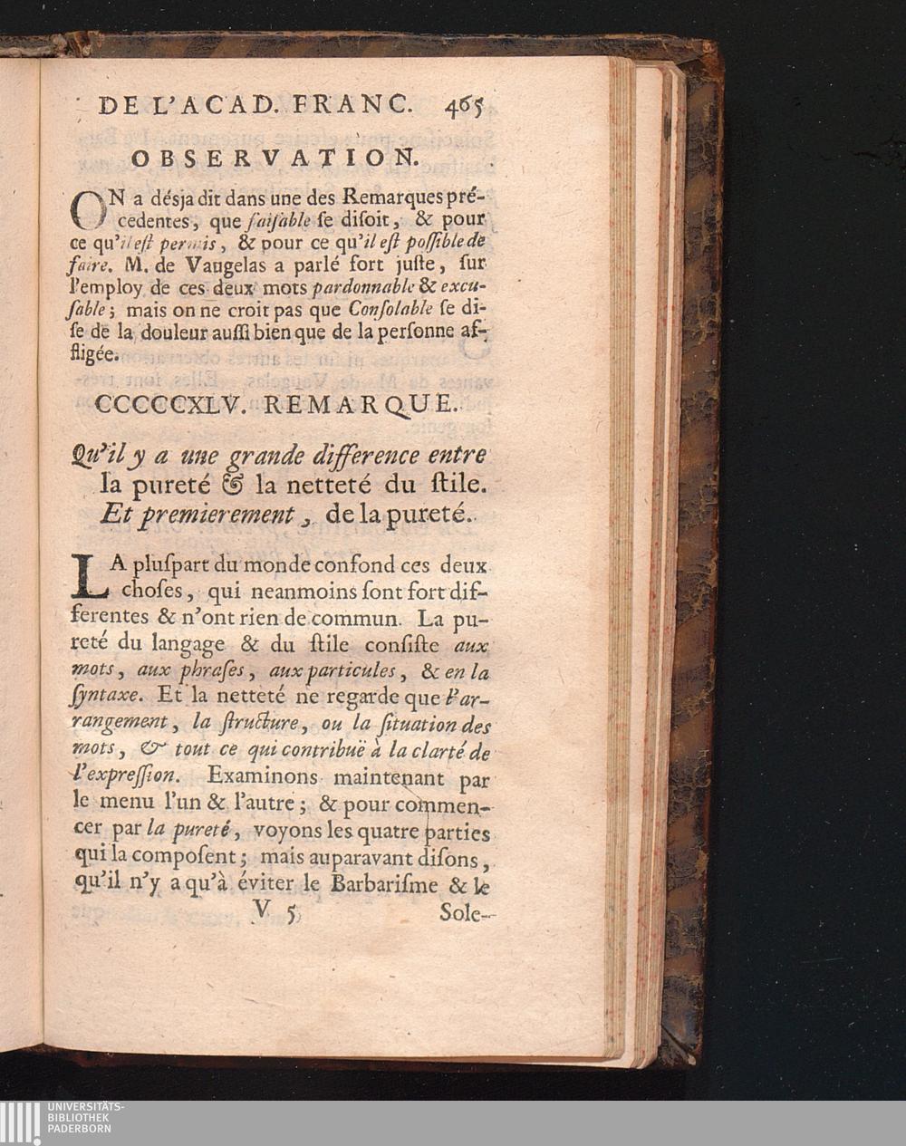 Observations De L'Academie Françoise Sur Les Remarques De M. De Vaugelas