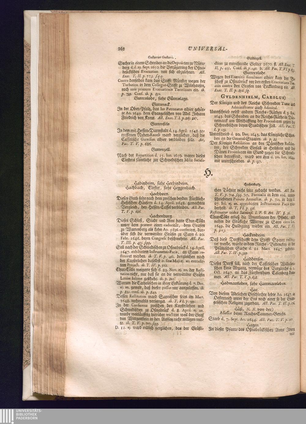 Universal-Register über die Sechs Theile der Westphälischen Friedens-Handlungen und Geschichte, imgleichen über die Zween Theile der Nürnbergischen Friedens-Executions-Handlungen und Geschichte / Gefertiget und zusammen getragen von Johann Ludolph Walther, Königl. Groß-Britannischem und Churfürstl. Braunschweig-Lüneburgischem Archiv-Secretario