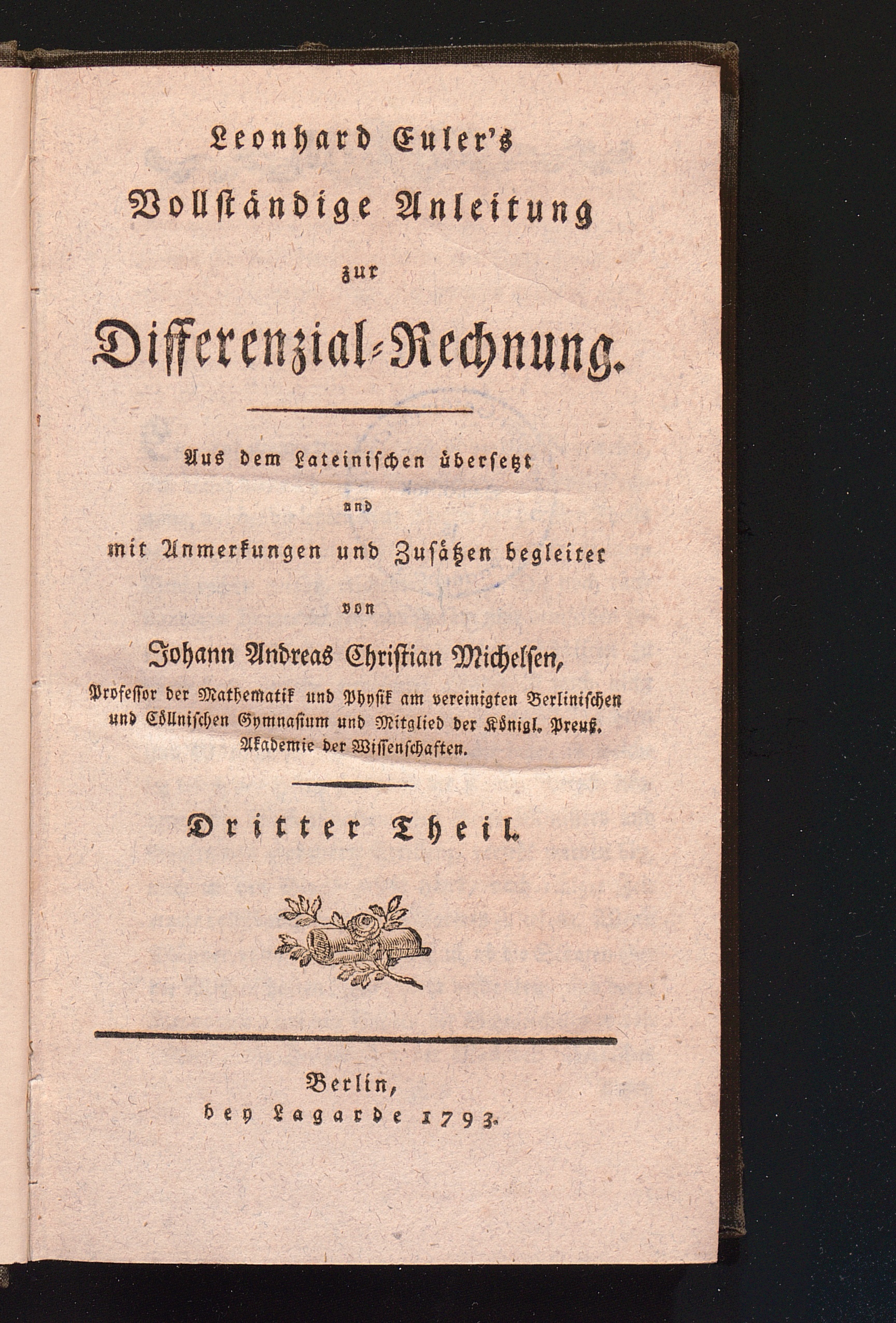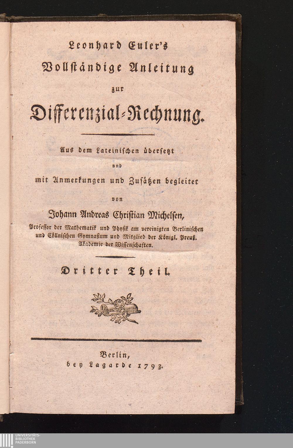 Vollständige Anleitung zur Differenzial-Rechnung. Dritter Theil, oder des zweyten Theils des Originals welcher den Gebrauch der Differenzial-Rechnung in der Analysis des Endlichen, so wie auch in der Lehre von den Reihen enthält