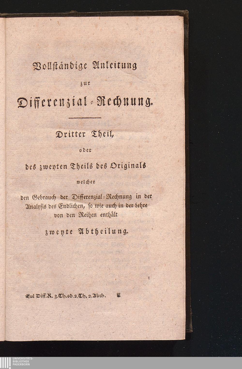 Vollständige Anleitung zur Differenzial-Rechnung. Dritter Theil, oder des zweyten[...]