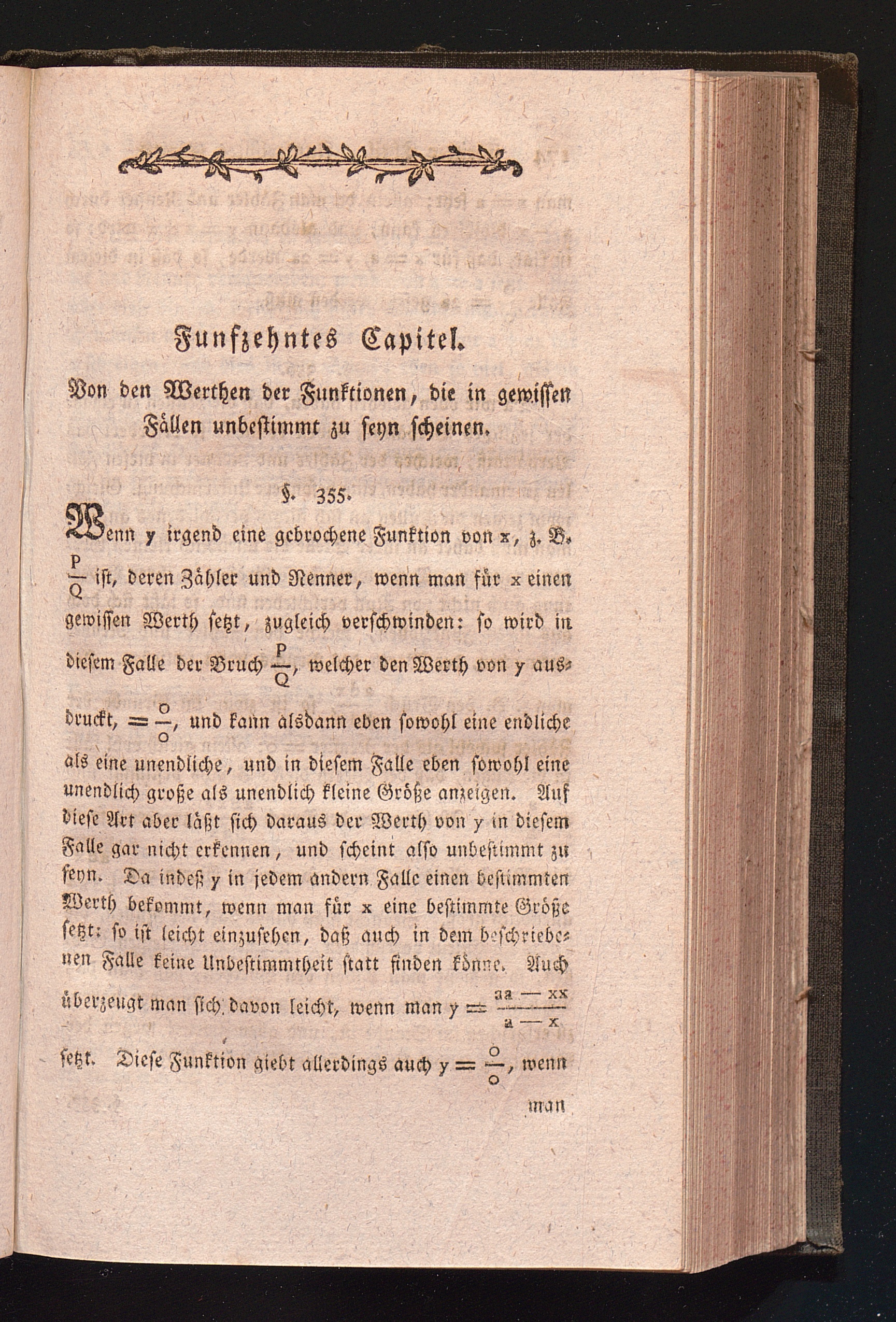 Funfzehntes Capitel. Von den Werthen der Funktionen, die in gewissen Fællen unbestimmt zu seyn scheinen.
