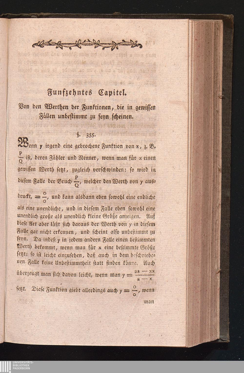 Funfzehntes Capitel. Von den Werthen der Funktionen, die in gewissen Fællen unbestimmt[...]