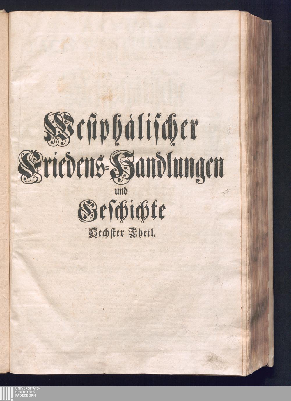Sechster Theil (1736) Worinnen enthalten ist, was vom Monath Junio des Jahrs 1648. biß zu dem, im Jahr 1649. völlig erfolgten Schluß und Ende des Universal-Friedens-Congressus zu Oßnabrück und Münster, gehandelt und geschlossen worden