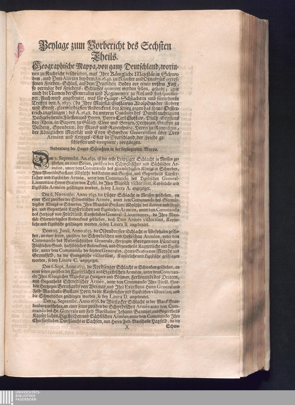 Sechster Theil (1736) Worinnen enthalten ist, was vom Monath Junio des Jahrs 1648. biß zu dem, im Jahr 1649. völlig erfolgten Schluß und Ende des Universal-Friedens-Congressus zu Oßnabrück und Münster, gehandelt und geschlossen worden