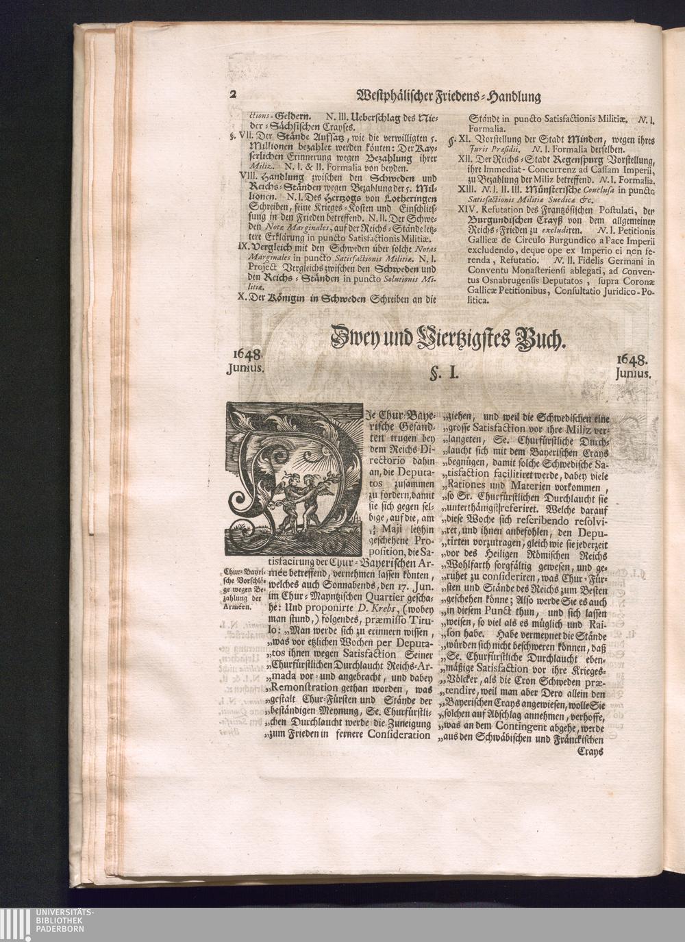 Sechster Theil (1736) Worinnen enthalten ist, was vom Monath Junio des Jahrs 1648. biß zu dem, im Jahr 1649. völlig erfolgten Schluß und Ende des Universal-Friedens-Congressus zu Oßnabrück und Münster, gehandelt und geschlossen worden
