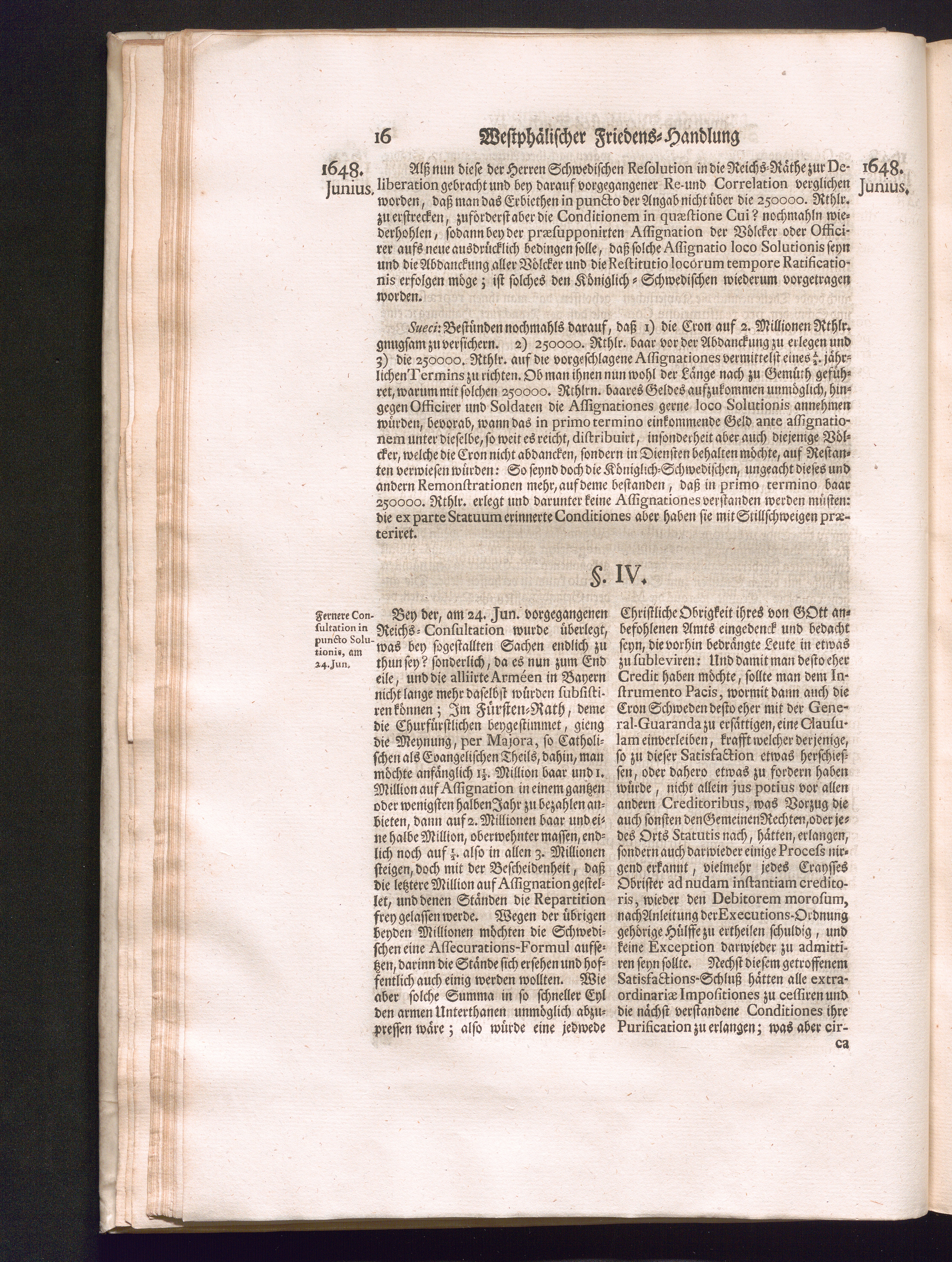 Sechster Theil (1736) Worinnen enthalten ist, was vom Monath Junio des Jahrs 1648. biß zu dem, im Jahr 1649. völlig erfolgten Schluß und Ende des Universal-Friedens-Congressus zu Oßnabrück und Münster, gehandelt und geschlossen worden