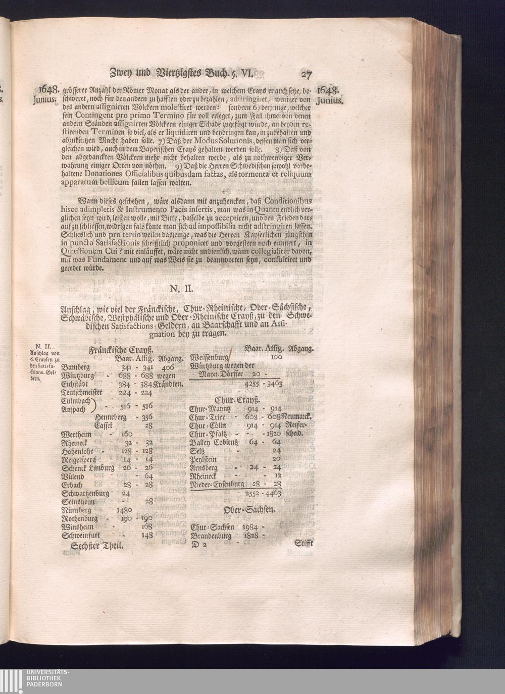Sechster Theil (1736) Worinnen enthalten ist, was vom Monath Junio des Jahrs 1648. biß zu dem, im Jahr 1649. völlig erfolgten Schluß und Ende des Universal-Friedens-Congressus zu Oßnabrück und Münster, gehandelt und geschlossen worden